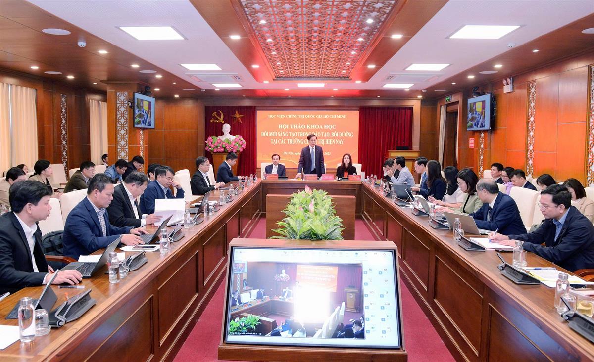 Phát biểu đề dẫn Hội thảo, PGS,TS Nguyễn Mạnh Hùng, Phó Giám đốc Học viện Chính trị quốc gia Hồ Chí Minh, Phó Chủ tịch Hội đồng Lý luận Trung ương khẳng định, Hội thảo khoa học“Đổi mới sáng tạo trong đào tạo, bồi dưỡng tại các trường chính trị hiện nay” là một chủ đề không chỉ quan trọng, thiết thực đối với các trường chính trị mà ngay cả đối với Học viện Chính trị quốc gia Hồ Chí Minh hiện nay.