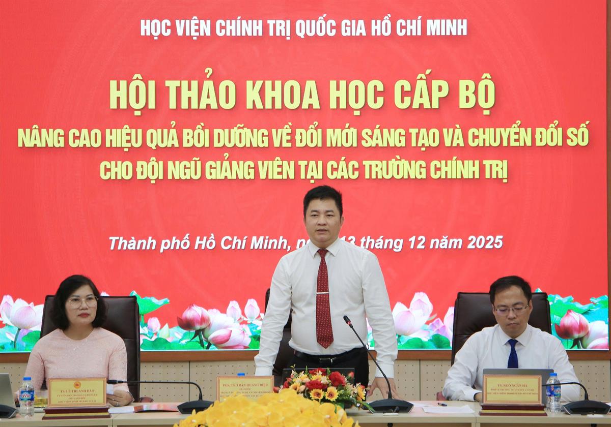 Phát biểu tổng kết và bế mạc Hội thảo, PGS,TS Trần Quang Diệu, Giám đốc Trung tâm Công nghệ và Chuyển đổi số khẳng định, Hội thảo khoa học cấp Bộ “Nâng cao hiệu quả bồi dưỡng về đổi mới sáng tạo và chuyển đổi số cho đội ngũ giảng viên tại các trường chính trị” diễn ra trong bối cảnh đặc biệt quan trọng, khi toàn Đảng, toàn quân và toàn dân đang nỗ lực hiện thực hóa khát vọng phát triển đất nước trong kỷ nguyên vươn mình của dân tộc.