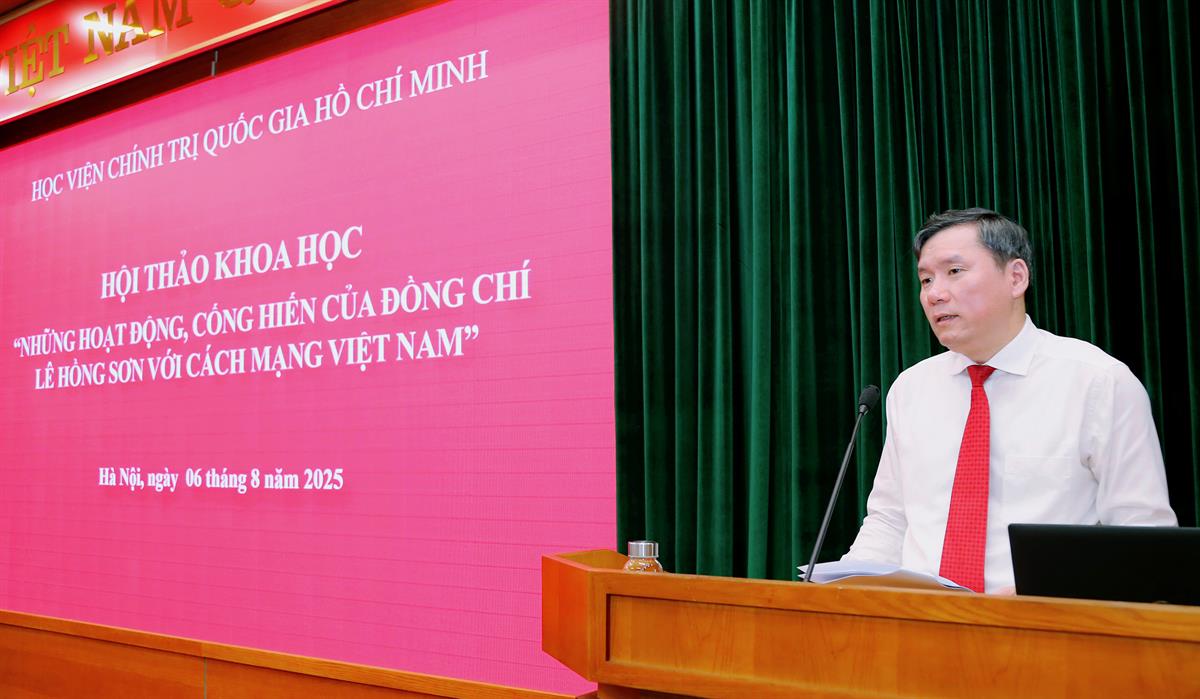 Sáng ngày 6/8/2025, tại Hà Nội, Học viện Chính trị quốc gia Hồ Chí Minh tổ chức hội thảo khoa học “Những hoạt động, cống hiến của đồng chí Lê Hồng Sơn với cách mạng Việt Nam”. GS,TS Lê Văn Lợi, Phó Giám đốc Học viện Chính trị quốc gia Hồ Chí Minh dự và chủ trì Hội thảo.