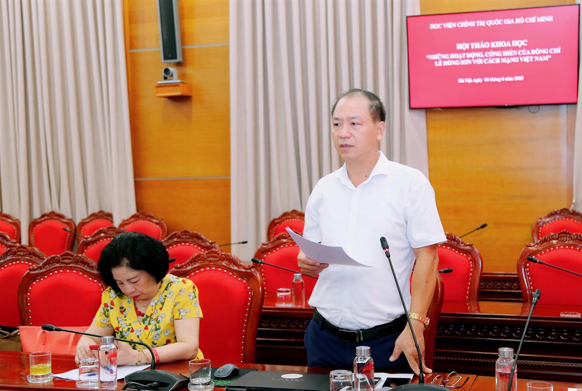 Phát biểu khai mạc và đề dẫn Hội thảo, GS,TS Lê Văn Lợi, Phó Giám đốc Học viện Chính trị quốc gia Hồ Chí Minh cho biết Hội thảo khoa học “Những hoạt động, cống hiến của đồng chí Lê Hồng Sơn với cách mạng Việt Nam” là dịp quan trọng để tìm hiểu sâu sắc hơn về cuộc đời, sự nghiệp hoạt động cách mạng vẻ vang và những cống hiến to lớn của đồng chí Lê Hồng Sơn cho sự nghiệp cách mạng của Đảng và dân tộc; vì độc lập, tự do của Tổ quốc, hạnh phúc của nhân dân. Đồng thời, qua Hội thảo tiếp tục sưu tầm tài liệu để cung cấp luận cứ khoa học trình Bộ Chính trị, đề xuất bổ sung đồng chí vào danh sách “Lãnh đạo tiền bối tiêu biểu của Đảng và cách mạng Việt Nam”.