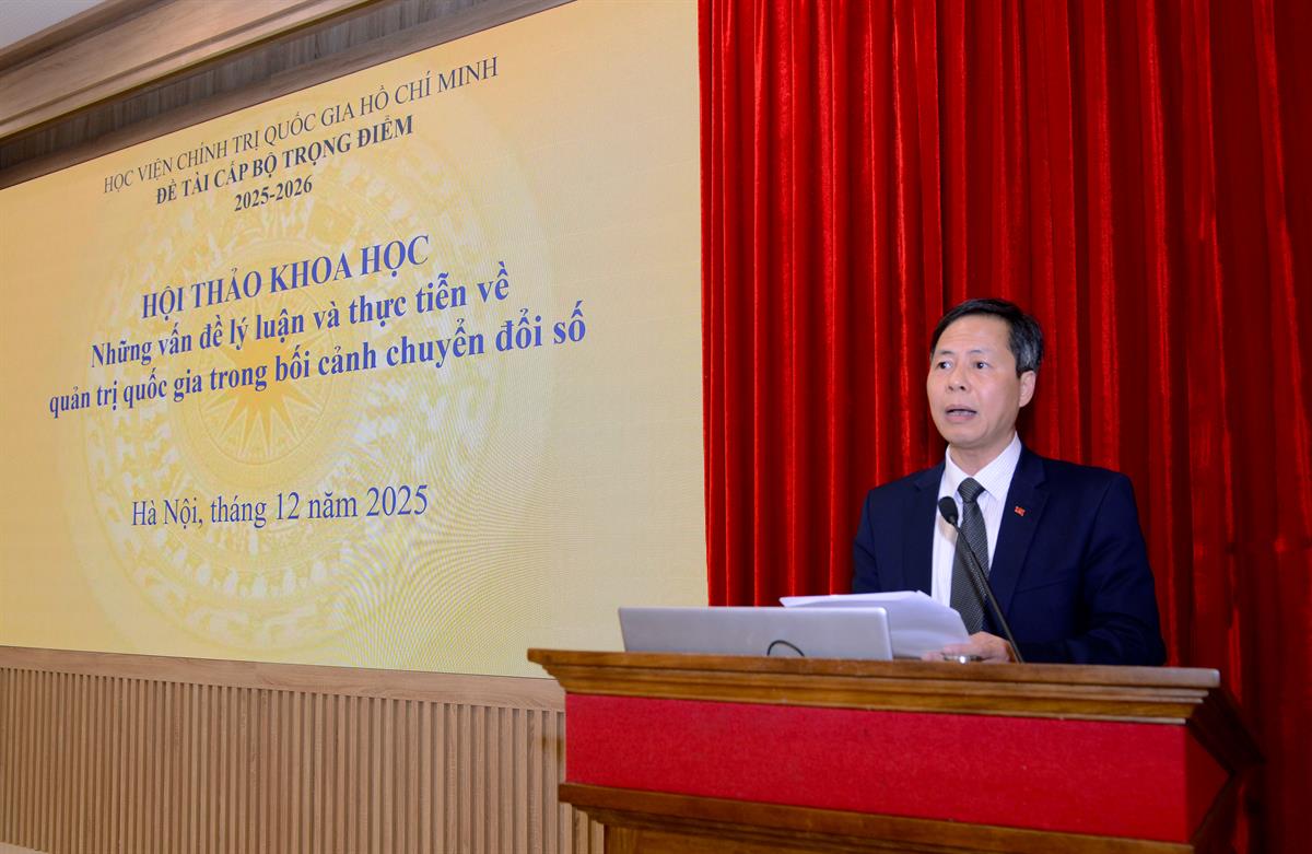 Phát biểu khai mạc và đề dẫn hội thảo, PGS,TS Lê Văn Chiến cho biết, trong bối cảnh toàn cầu hóa sâu rộng và sự phát triển mạnh mẽ của khoa học, công nghệ, đặc biệt là cuộc Cách mạng công nghiệp lần thứ tư, quản trị quốc gia đang đứng trước những yêu cầu đổi mới mang tính căn bản và toàn diện. Những biến động nhanh chóng, phức tạp và khó dự báo của môi trường quốc tế, cùng với các thách thức mới như biến đổi khí hậu, an ninh phi truyền thống, già hóa dân số, bất bình đẳng xã hội và chuyển đổi số, đã đặt ra yêu cầu cấp thiết phải nâng cao năng lực quản trị quốc gia nhằm bảo đảm phát triển bền vững và bao trùm.