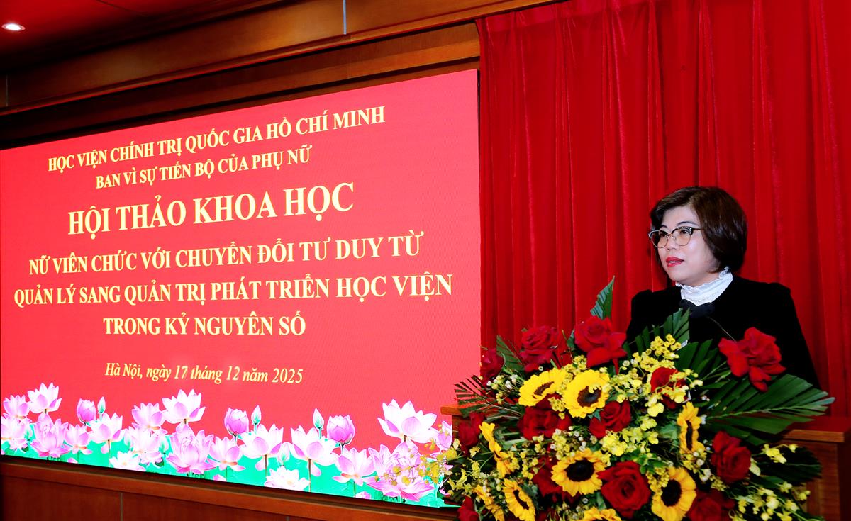 Kết luận Hội thảo, PGS,TS Hoàng Phúc Lâm, Phó Giám đốc Học viện Chính trị quốc gia Hồ Chí Minh, Trưởng Ban Vì sự tiến bộ của phụ nữ Học viện khẳng định, Hội thảo là một trong những hoạt động trọng điểm của Ban Vì sự tiến bộ của phụ nữ Học viện năm 2025, thể hiện vai trò ngày càng nổi bật của đội ngũ nữ viên chức trong sự nghiệp hiện đại hóa, hội nhập và phát triển bền vững của Học viện; đồng thời là là bước đi cụ thể nhằm góp phần thúc đẩy quá trình đổi mới tư duy, nâng cao năng lực quản trị phát triển, hoàn thiện mô hình tổ chức của Học viện Chính trị quốc gia Hồ Chí Minh trong bối cảnh chuyển đổi số.