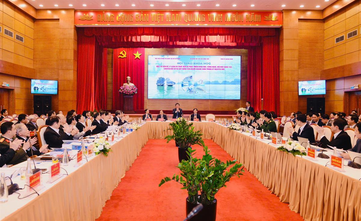 Hôm nay, trong không khí toàn Đảng, toàn dân, toàn quân ta đang nỗ lực tăng tốc, bứt phá về đích trong những tháng cuối năm 2025, và đang tích cực chuẩn bị về mọi mặt cho Đại hội đại biểu toàn quốc lần thứ XIV của Đảng, tôi rất vui mừng được về dự và phát biểu tại Hội thảo “Một số vấn đề lý luận và thực tiễn về phát triển khoa học, công nghệ, đổi mới sáng tạo, chuyển đổi số và xây dựng con người Quảng Ninh trong kỷ nguyên mới”.