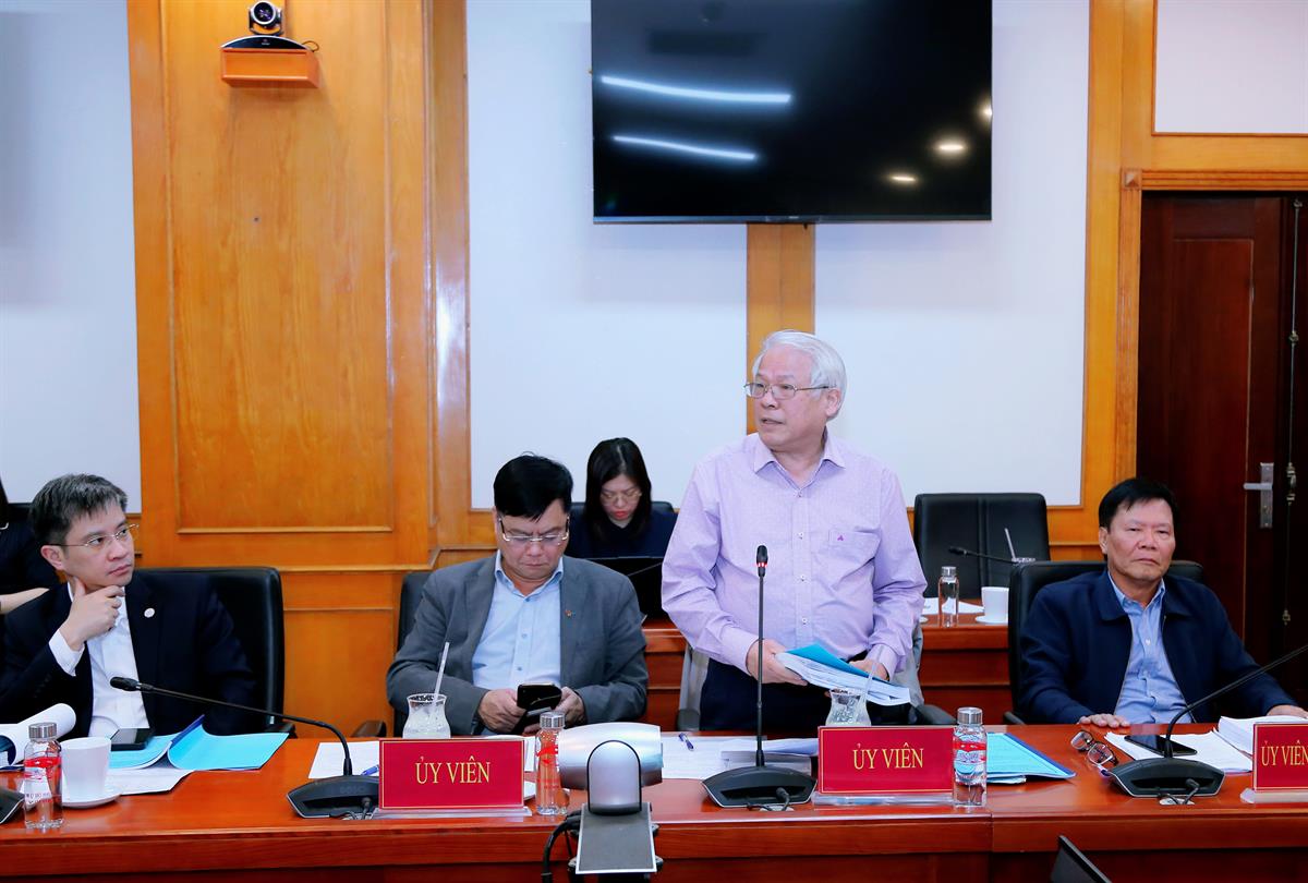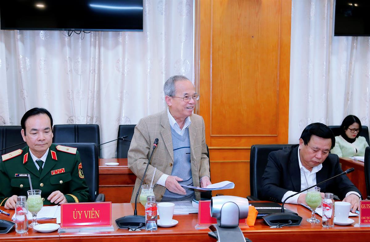 GS,TS Tạ Ngọc Tấn, nguyên Ủy viên Trung ương Đảng, nguyên Giám đốc Học viện Chính trị quốc gia Hồ Chí Minh, Phó Chủ tịch thường trực Hội đồng Lý luận Trung ương phát biểu tại Hội đồng