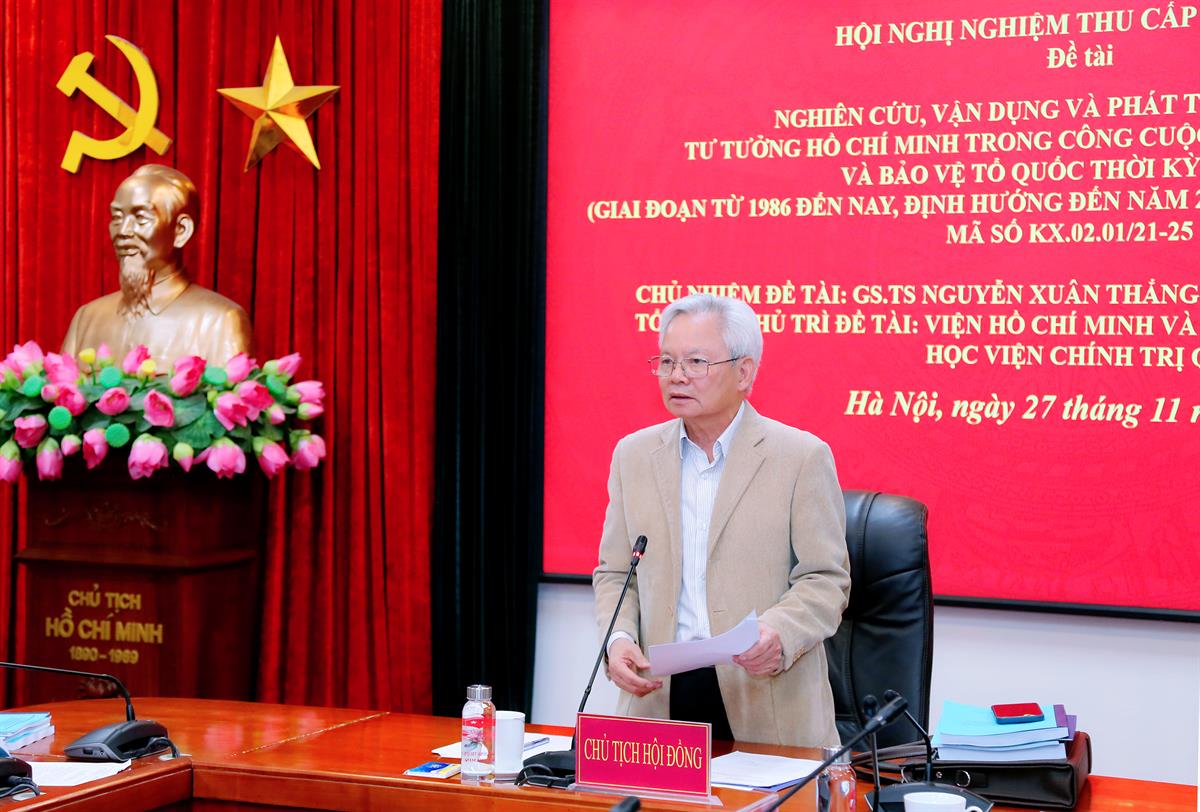 Tại hội nghị, các thành viên Hội đồng đã tập trung phân tích giá trị lý luận và thực tiễn của đề tài, đánh giá cao sự công phu, hệ thống và tính khoa học trong quá trình triển khai. Các ý kiến khẳng định đề tài đã làm nổi bật được những nội dung cốt lõi, có tính nền tảng trong tư tưởng Hồ Chí Minh, đồng thời chỉ ra được sự vận dụng sáng tạo của Đảng ta trong các giai đoạn phát triển, nhất là từ khi tiến hành công cuộc đổi mới. Một số thành viên nhấn mạnh đề tài có cách tiếp cận mới, mở rộng không gian nghiên cứu, gắn với các yêu cầu đặt ra trong quá trình xây dựng Nhà nước pháp quyền xã hội chủ nghĩa, đổi mới mô hình tăng trưởng, hội nhập quốc tế sâu rộng, bảo vệ Tổ quốc trong tình hình mới.