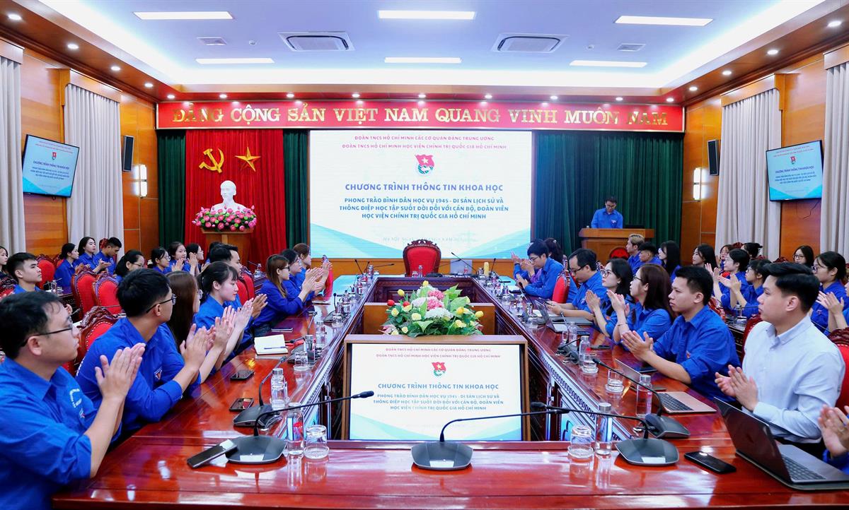 Tại chương trình, các đại biểu tham dự đã cùng Báo cáo viên thảo luận, làm rõ những ý nghĩa, giá trị di sản lịch sử của Phong trào Bình dân học vụ năm 1945 và thông điệp học tập suốt đời đối với cán bộ, đoàn viên Học viện Chính trị quốc gia Hồ Chí Minh hiện nay, khẳng định nỗ lực, quyết tâm học tập và học tập suốt đời của thanh niên trường Đảng để đóng góp thiết thực vào sự nghiệp xây dựng và phát triển đất nước phồn vinh, thịnh vượng trong kỷ nguyên mới./.