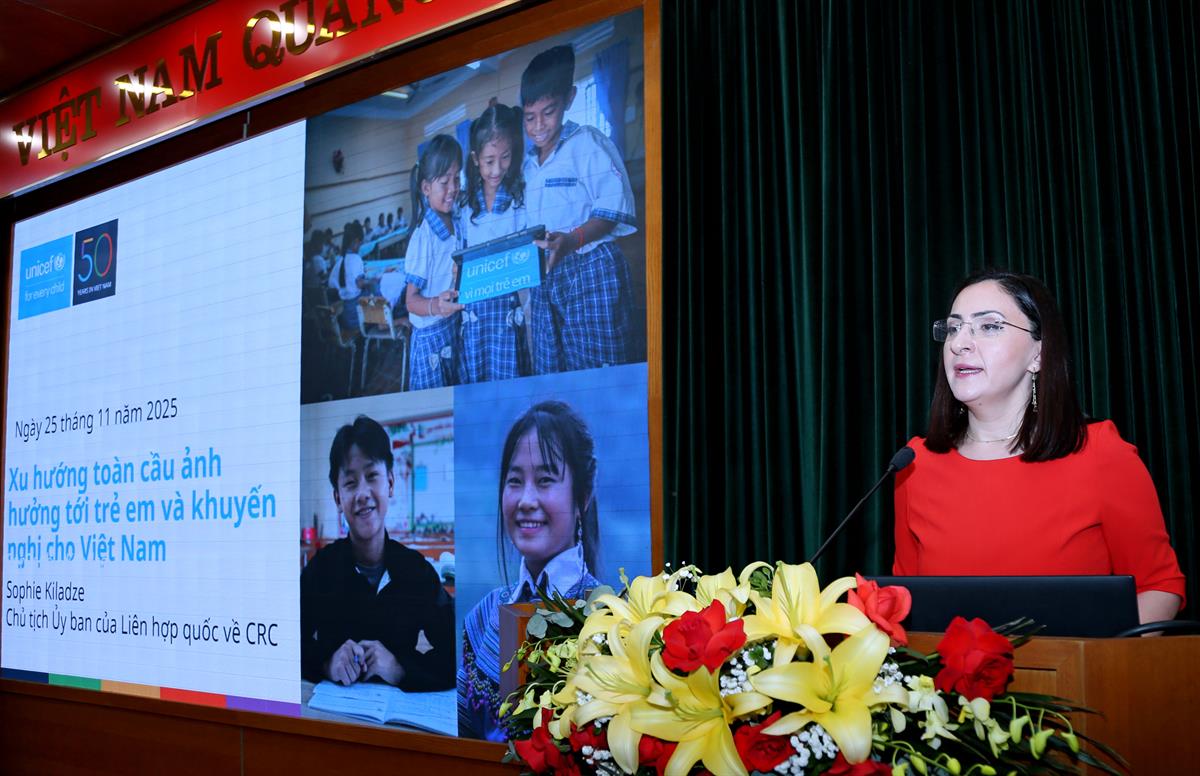 Tuy nhiên, đồng chí Viện trưởng Viện Kinh tế - Xã hội và Môi trường cũng cho biết: trong bối cảnh phát triển nhanh và sâu rộng hiện nay, trẻ em Việt Nam đang phải đối mặt với nhiều thách thức mới. Đó là các vấn đề về khoảng cách phát triển giữa các vùng miền vẫn lớn, nhất là đối với trẻ em dân tộc thiểu số; tác động của biến đổi khí hậu và thiên tai gây rủi ro trực tiếp và lâu dài đến sức khỏe, dinh dưỡng, an toàn của trẻ em; chuyển đổi số và môi trường mạng mở ra cơ hội nhưng cũng đặt ra thách thức về an toàn, định hướng và năng lực tiếp cận; di cư, đô thị hóa và bất bình đẳng xã hội tiếp tục ảnh hưởng đến điều kiện sống, tiếp cận giáo dục, y tế của trẻ em, v.v.. Những thách thức này đòi hỏi phải có cách tiếp cận toàn diện, hiện đại liên ngành và phù hợp với bối cảnh mới, đồng thời cần sự phối hợp chặt chẽ giữa Nhà nước, xã hội và các đối tác quốc tế, trong đó UNICEF là đối tác đặc biệt quan trọng.
