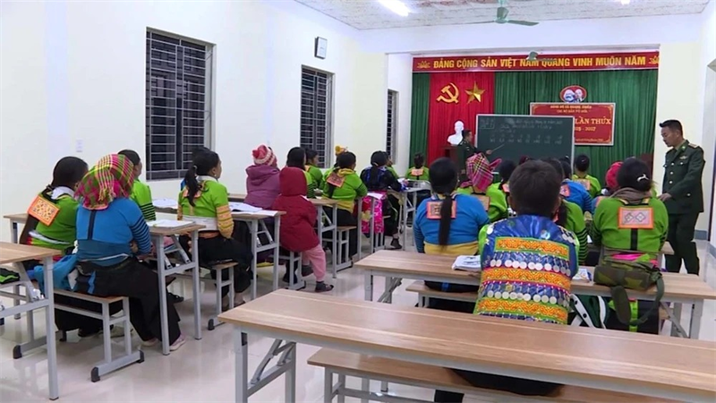 Lớp học xóa mù chữ cho người dân tộc Mông, huyện biên giới Mường Lát do Bộ đội biên phòng Thanh Hóa tổ chức.