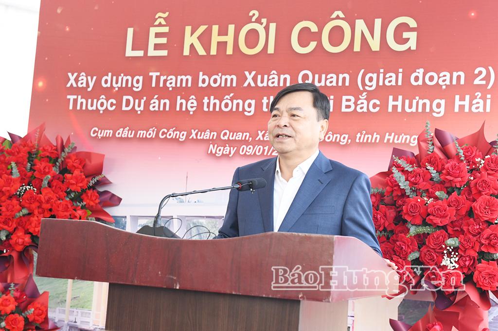 Phát biểu tại lễ khởi công, các đồng chí: Thứ trưởng Bộ Nông nghiệp và Môi trường Nguyễn Hoàng Hiệp và Phó Chủ tịch UBND tỉnh Lại Văn Hoàn khẳng định: Đây là công trình có ý nghĩa quan trọng, góp phần bảo đảm nguồn nước tưới ổn định, chủ động trong mùa khô; tăng cường lưu lượng dòng chảy, cải thiện chất lượng nước, giảm thiểu ô nhiễm môi trường; đồng thời nâng cao hiệu quả khai thác, phát huy giá trị đầu tư của Hệ thống thủy lợi Bắc Hưng Hải, đáp ứng yêu cầu phát triển kinh tế – xã hội của khu vực trong giai đoạn tới. Để công trình hoàn thành đúng tiến độ, các đồng chí yêu cầu: Chủ đầu tư, nhà thầu khẩn trương huy động nhân lực, thiết bị, tổ chức thi công bảo đảm tiến độ, chất lượng công trình theo đúng kế hoạch đề ra.