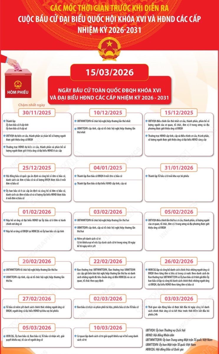 15/3/2026 là Ngày toàn dân đi bầu cử đại biểu Quốc hội khóa XVI và đại biểu Hội đồng nhân dân các cấp nhiệm kỳ 2026-2031.