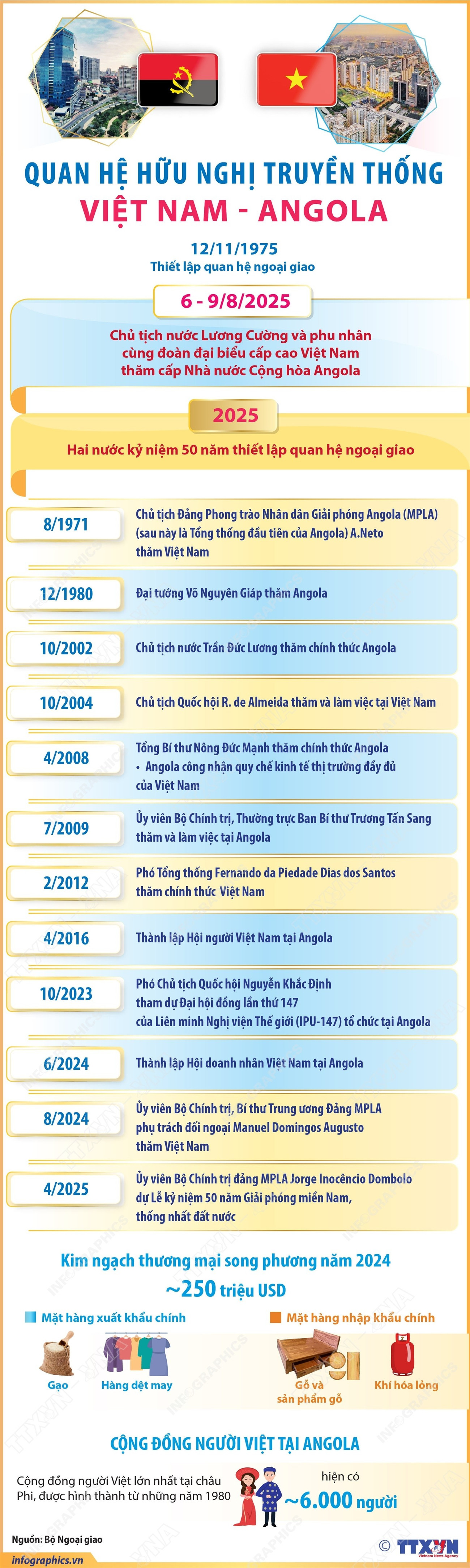 Chủ tịch nước Lương Cường thăm Angola nhân kỷ niệm 50 năm thiết lập quan hệ ngoại giao hai nước, mở ra cơ hội hợp tác mới giữa Việt Nam và Angola trong thời kỳ phát triển.