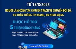 Theo Nghị định số 179/2025/NĐ-CP ngày 1/7/2025 của Chính phủ, từ 15/8/2025, người làm công tác chuyên trách về chuyển đổi số, an toàn thông tin mạng, an ninh mạng trong cơ quan của Đảng Cộng sản Việt Nam, Nhà nước, Mặt trận Tổ quốc Việt Nam (gồm các tổ chức chính trị - xã hội) từ trung ương đến cấp xã và lực lượng vũ trang (quân đội, công an, cơ yếu) được hưởng mức hỗ trợ 5.000.000 đồng/tháng. Mức hỗ trợ này trả cùng kỳ lương hằng tháng và không dùng để tính đóng, hưởng BHXH và BHYT, được áp dụng cho đến khi thực hiện cải cách chính sách tiền lương theo chủ trương của cấp có thẩm quyền.