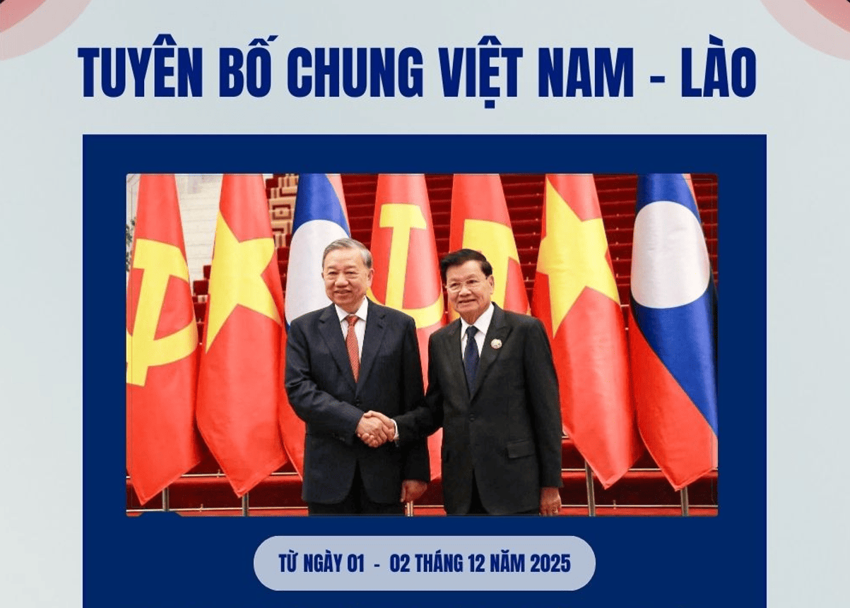 (ĐCSVN) - Trong khuôn khổ chuyến thăm cấp Nhà nước tới Nước Cộng hòa Dân chủ Nhân dân Lào, chiều ngày 2/12, Tổng Bí thư Tô Lâm và Tổng Bí thư, Chủ tịch nước Lào Thongloun Sisoulith đồng chủ trì Cuộc gặp cấp cao giữa Đảng Cộng sản Việt Nam và Đảng Nhân dân Cách mạng Lào. Ngay sau đó, hai bên đã ra Tuyên bố chung Việt Nam - Lào.