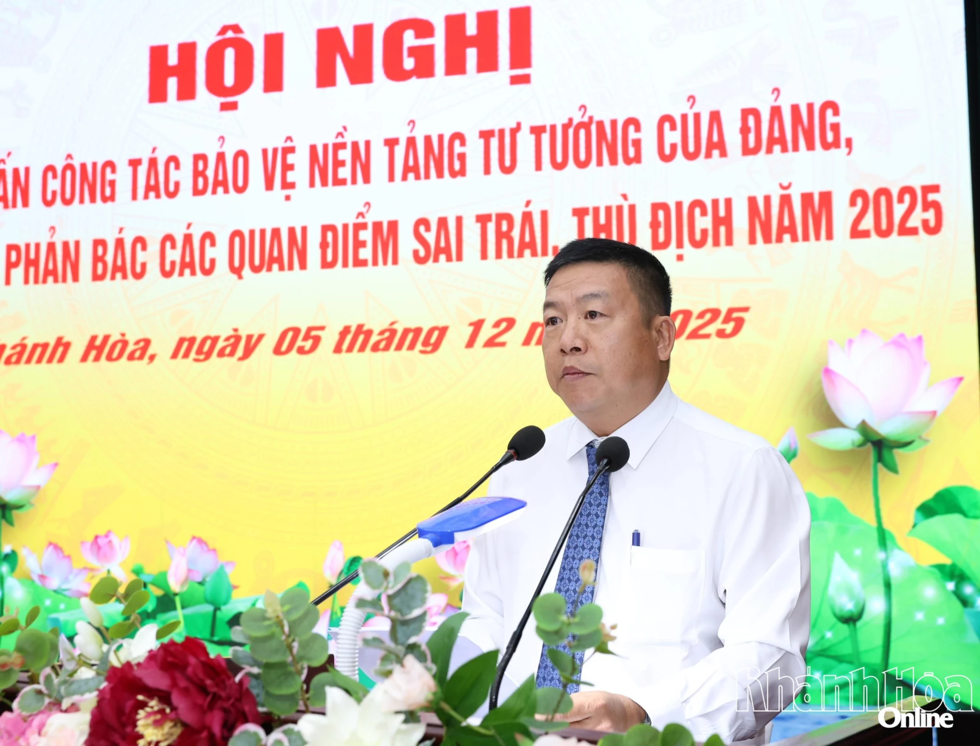 Ngày 5-12, Ban Chỉ đạo 35 tỉnh Khánh Hòa tổ chức hội nghị tập huấn công tác bảo vệ nền tảng tư tưởng của Đảng, đấu tranh phản bác các quan điểm sai trái, thù địch năm 2025. Đồng chí Võ Hoàn Hải - Ủy viên Ban Thường vụ Tỉnh ủy, Trưởng Ban Tuyên giáo và Dân vận Tỉnh ủy, Phó Trưởng ban Thường trực Ban Chỉ đạo 35 tỉnh chủ trì hội nghị.