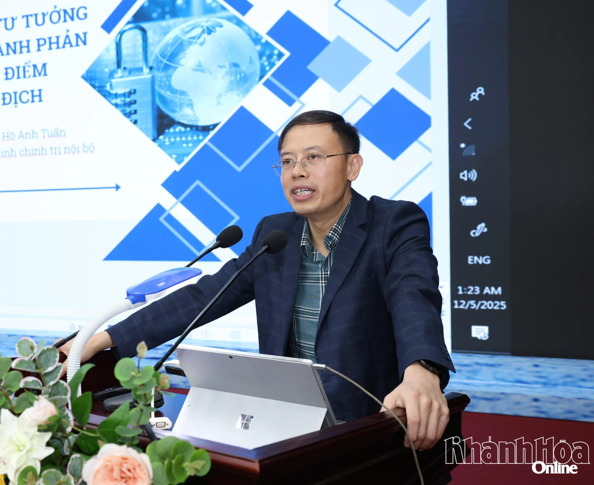 | Thượng tá, PGS.TS Hồ Anh Tuấn - Trưởng Khoa An ninh nội bộ Học viện An ninh nhân dân trình bày chuyên đề tại hội nghị. |