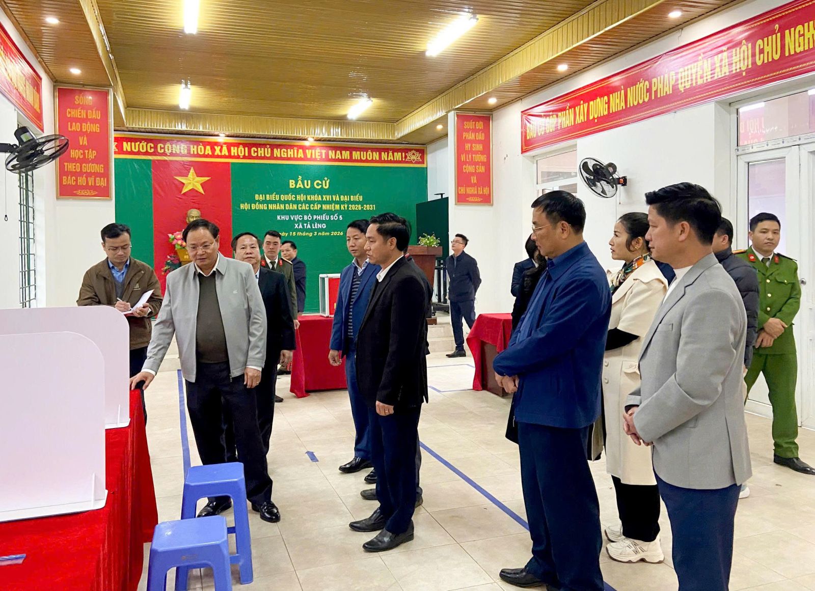 Tại các điểm kiểm tra, đồng chí Bí thư Tỉnh ủy Lê Minh Ngân đánh giá cao sự chuẩn bị của xã Tả Lèng nói chung, các bản trên địa bàn xã nói riêng trong công tác chuẩn bị bầu cử đại biểu Quốc hội khoá XVI và đại biểu HĐND các cấp nhiệm kỳ 2026-2031. Trong đó, cơ bản đảm bảo việc trang trí khánh tiết; niêm yết danh sách cử tri và những người ứng cử, đảm bảo cử tri thuận tiện theo dõi, tìm hiểu thông tin; chuẩn bị cơ sở vật chất đầy đủ; sắp xếp, bố trí các bàn hướng dẫn, bàn ghi phiếu, bàn đóng dấu một cách khoa học, bài bản, tạo điều kiện cho cử tri dễ dàng bỏ phiếu.