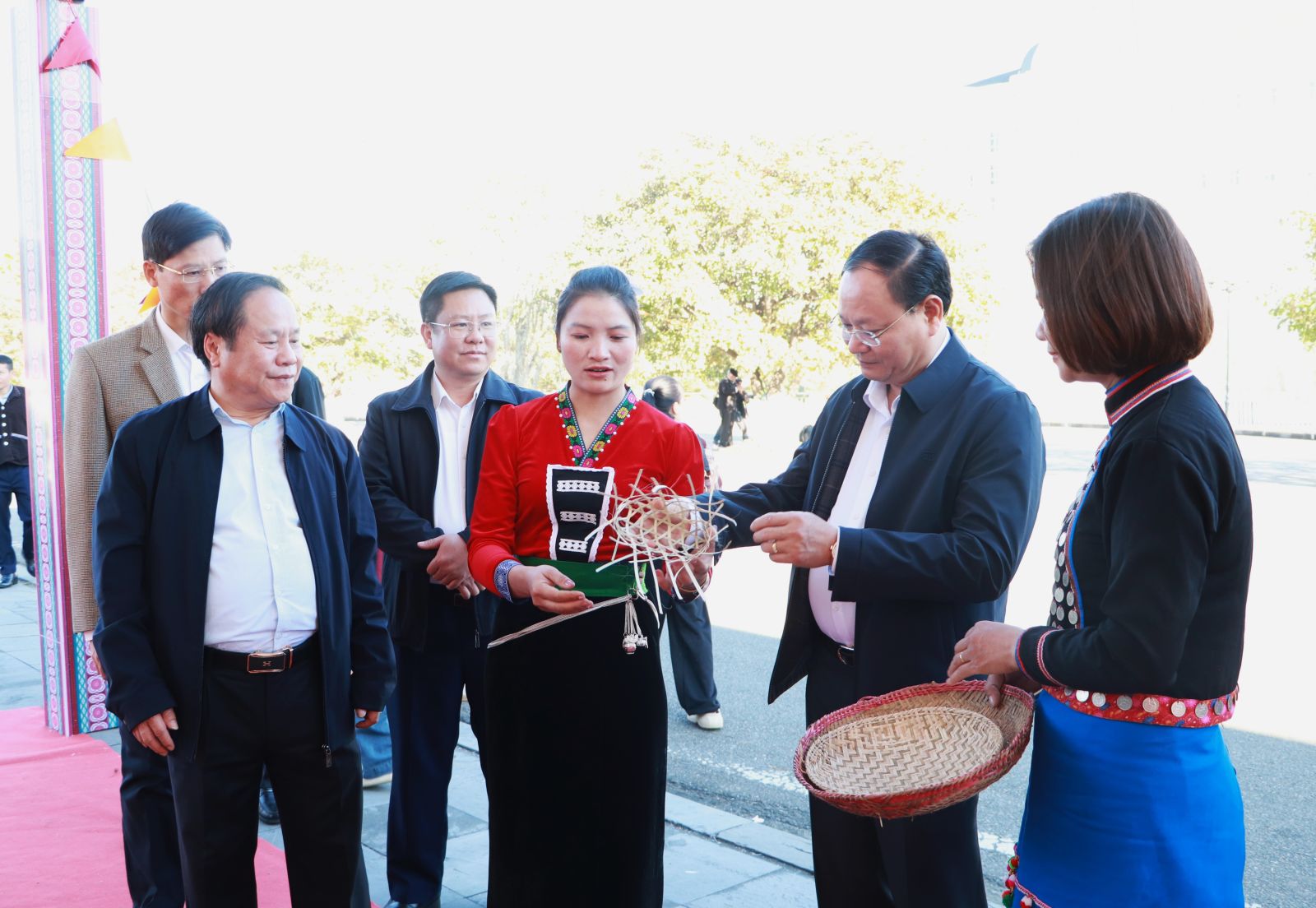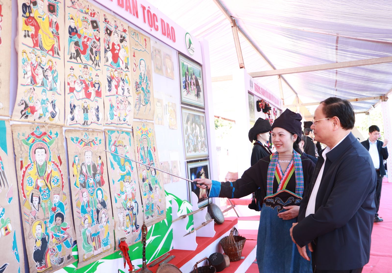 Bí thư Tỉnh ủy Lê Minh Ngân cũng thăm không gian văn hóa dân tộc Dao.