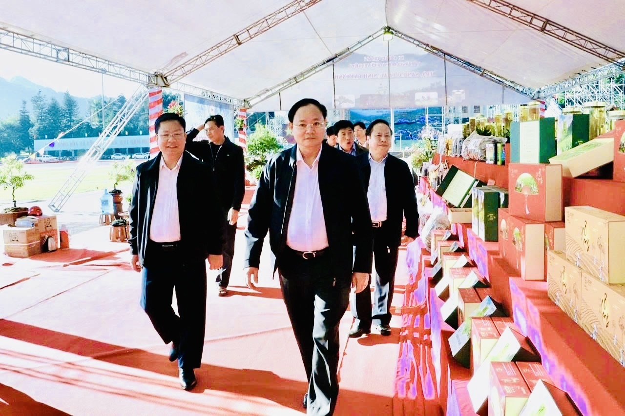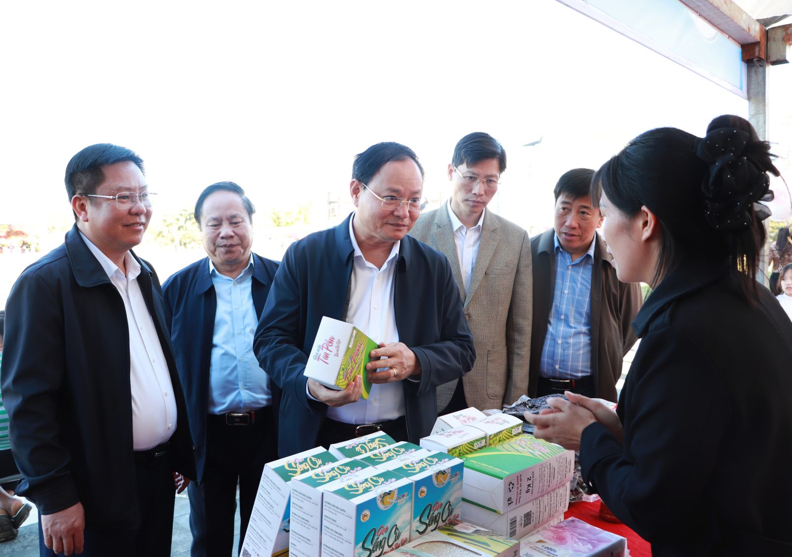 Các đồng chí lãnh đạo tỉnh thăm không gian văn hóa và động viên các chủ thể OCOP