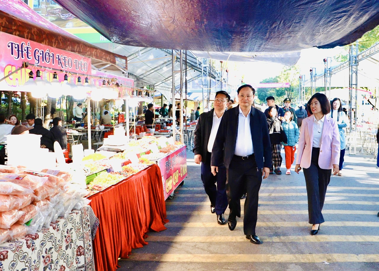 Đồng chí Bí thư Tỉnh ủy cũng thăm khu ẩm thực với đa dạng, phong phú các mặt hàng bày bán.