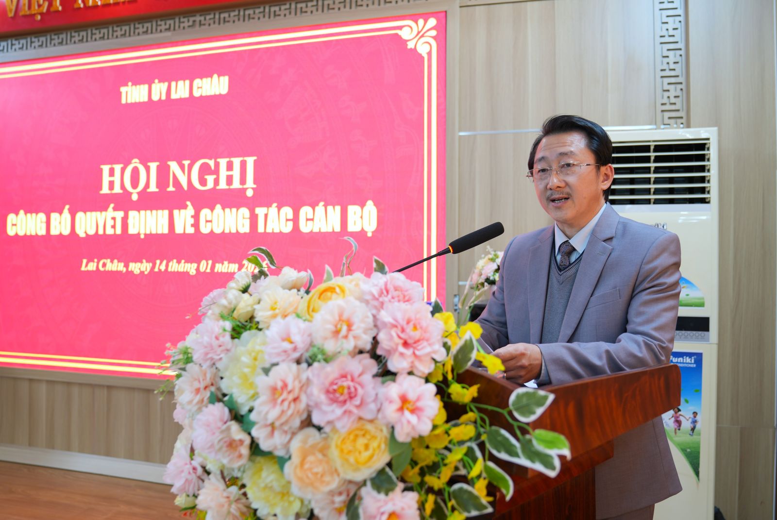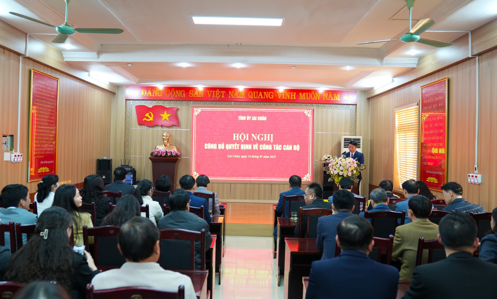 Chiều nay (14/1), Tỉnh ủy Lai Châu tổ chức Hội nghị công bố quyết định của Ban Thường vụ Tỉnh ủy về công tác cán bộ. Đồng chí Sùng A Hồ - Phó Bí thư Thường trực Tỉnh ủy, Chủ tịch Ủy ban MTTQ Việt Nam tỉnh dự, trao quyết định và giao nhiệm vụ.