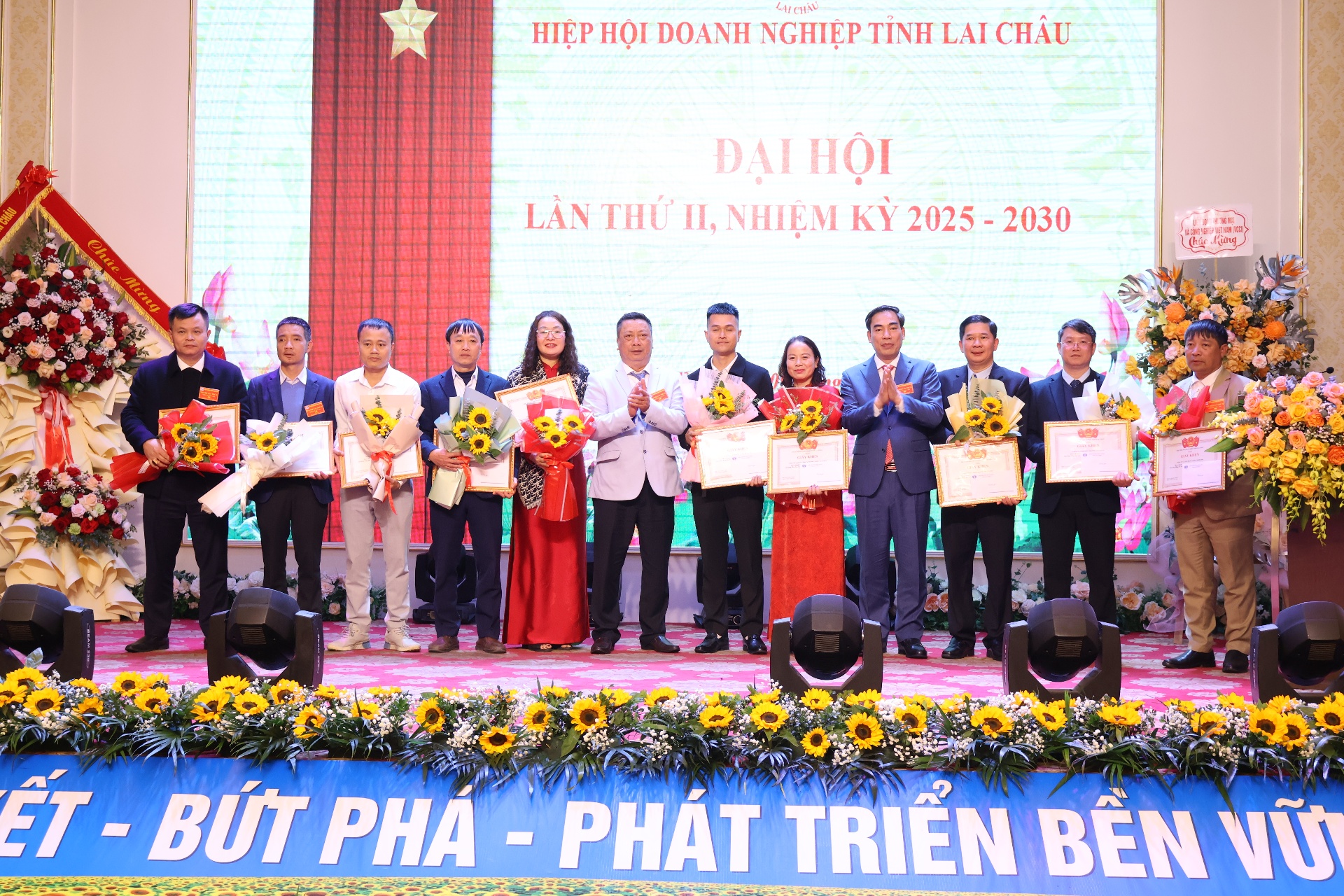 Nhân dịp này, UBND tỉnh tặng Bằng khen cho 1 tập thể, 6 cá nhân có thành tích xuất sắc trong phong trào thi đua hoàn thành xuất sắc nhiệm vụ công tác Hội và phong trào Hiệp hội Doanh nghiệp tỉnh Lai Châu giai đoạn 2019-2025; Hiệp hội doanh nghiệp tỉnh tặng giấy khen cho 15 cá nhân có thành tích xuất sắc trong công tác xây dựng Hiệp hội giai đoạn 2019 – 2025. Hiệp hội Doanh nghiệp 5 tỉnh: Lai Châu, Tuyên Quang, Phú Thọ, Lào Cai, Điện Biên tổ chức ký kết biên bản ghi nhớ hợp tác về ứng dụng trí tuệ nhân tạo trong tư vấn pháp luật và hỗ trợ doanh nghiệp.