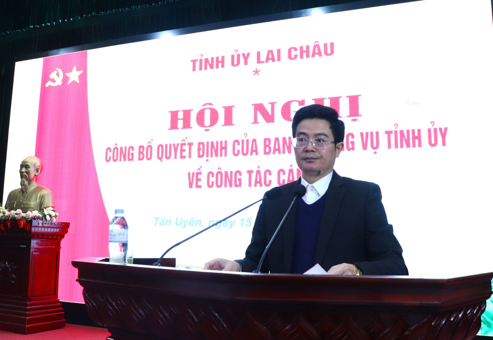 Tại Hội nghị, đại diện lãnh đạo Ban Tổ chức Tỉnh ủy đã công bố Quyết định điều động cán bộ. Theo Quyết định số 163-QĐ/TU ngày 12/1/2026, Ban Thường vụ Tỉnh ủy quyết định đồng chí Nguyễn Minh Hiệu, Tỉnh ủy viên thôi giữ chức Giám đốc Sở Khoa học và Công nghệ; điều động, chỉ định tham gia Ban Chấp hành, Ban Thường vụ và giữ chức Bí thư Đảng ủy xã Tân Uyên nhiệm kỳ 2025 - 2030 từ ngày 15/01/2026.