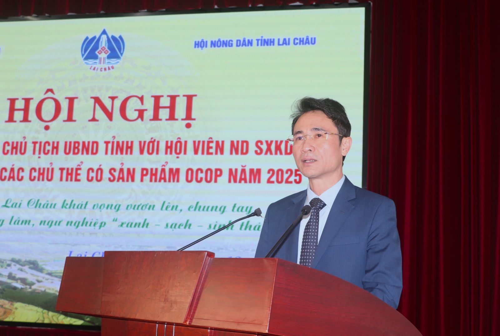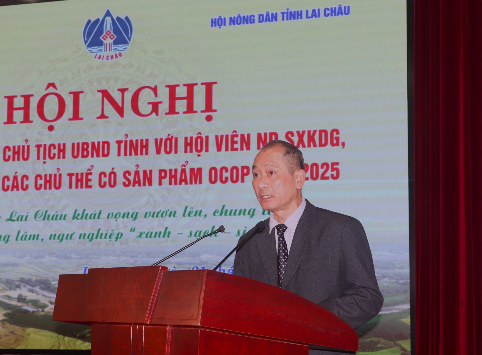 Hội nghị có sự tham dự của đại diện lãnh đạo các sở, ban, ngành tỉnh; đại diện các tổ chức hiệp hội, doanh nghiệp: Hiệp hội Sâm Lai Châu, Hội Nông sản tỉnh, Chi hội chè Lai Châu; Ngân hàng Chính sách xã hội tỉnh, Ngân hàng Nông nghiệp và Phát triển nông thôn tỉnh, Bưu điện tỉnh Lai Châu; Công ty TNHH giống vật tư nông nghiệp Lai Châu; 162 cán bộ Hội Nông dân các xã, phường, Hội viên nông dân sản xuất, kinh doanh giỏi, các chủ thể OCOP.