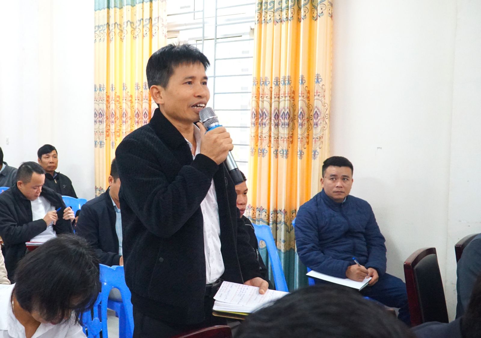 Tại Hội nghị, đại diện Nhân dân, công chức, viên chức xã Nậm Tăm đã nêu các ý kiến, kiến nghị tập trung vào các lĩnh vực: Công tác cải cách hành chính, sắp xếp, ổn định dân cư; hỗ trợ nhà ở; bảo vệ môi trường tại Nhà máy chế biến mủ cao su; cấp giấy chứng nhận quyền sử dụng đất...