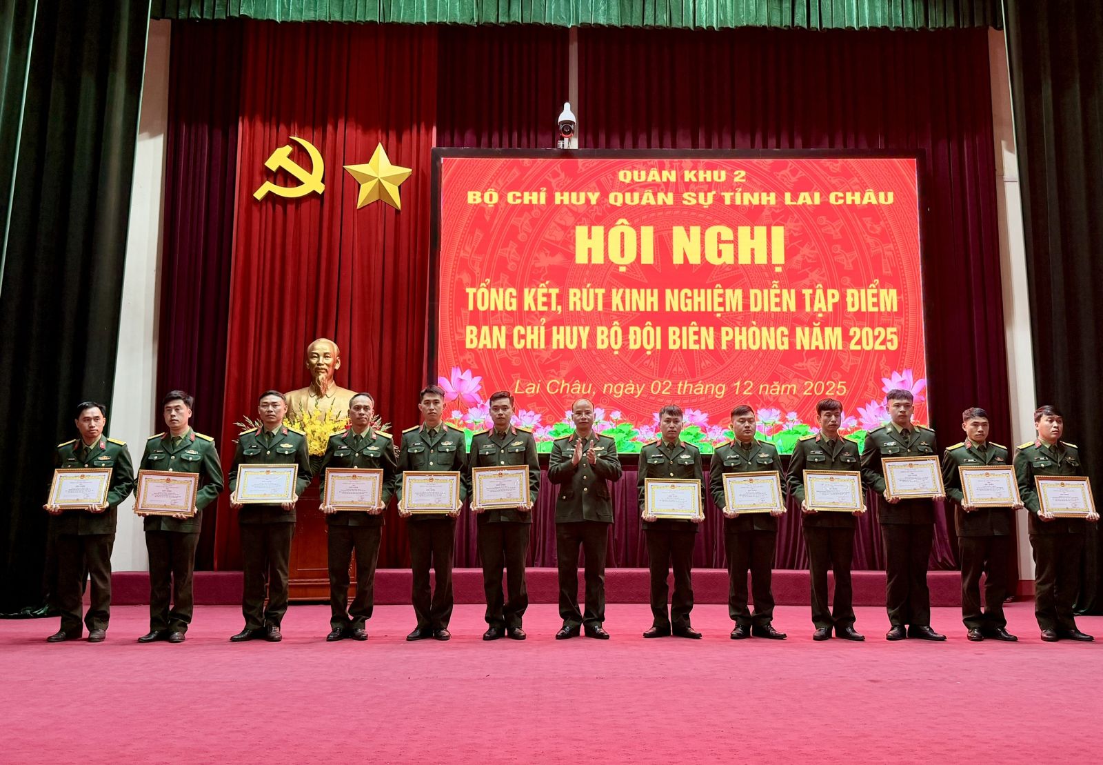 Nhân dịp này, Thủ trưởng Bộ Chỉ huy Quân sự tỉnh tặng Giấy khen cho 9 tập thể, 18 cá nhân có thành tích tốt trong thực hiện nhiệm vụ diễn tập Ban Chỉ huy Bộ đội Biên phòng năm 2025.