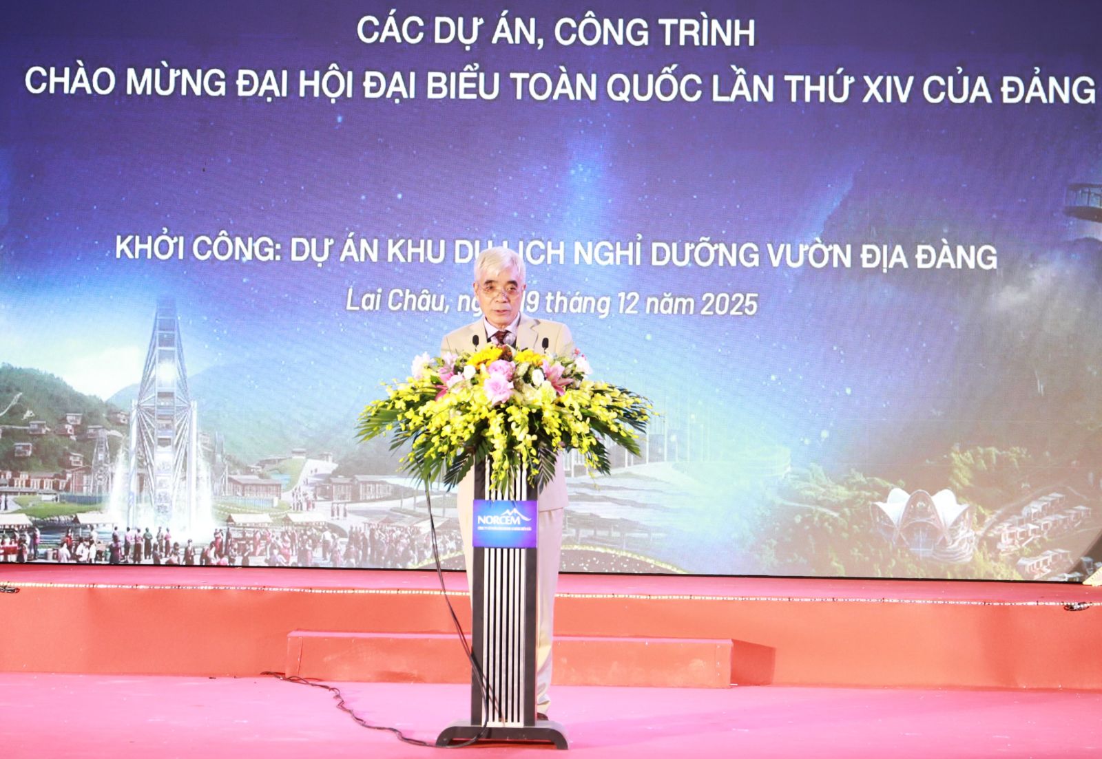 Phát biểu tại Lễ khởi công Dự án Quần thể du lịch nghỉ dưỡng Vườn địa đàng Sơn Bình, tỉnh Lai Châu, đồng chí Hà Quang Trung - Phó Bí thư Tỉnh ủy, Chủ tịch UBND tỉnh Lai Châu nhấn mạnh, việc khởi công Dự án Quần thể khu du lịch nghỉ dưỡng Vườn Địa Đàng Sơn Bình hôm nay là công trình thiết thực chào mừng Đại hội đại biểu toàn quốc lần thứ XIV của Đảng; là minh chứng sinh động cho việc cụ thể hóa các chủ trương lớn của Đảng về huy động nguồn lực xã hội, nhất là đầu tư ngoài ngân sách, gắn phát triển kinh tế với bảo vệ môi trường, gìn giữ bản sắc văn hóa và nâng cao đời sống Nhân dân. Cũng thể hiện quyết tâm chính trị cao của Đảng bộ, chính quyền và Nhân dân các dân tộc tỉnh Lai Châu trong việc hiện thực hóa Quy hoạch tỉnh thời kỳ 2021-2030, tầm nhìn đến năm 2050; khẳng định chủ trương nhất quán trong thu hút các nhà đầu tư chiến lược, phát triển du lịch chất lượng cao, bền vững, hài hòa với thiên nhiên và văn hóa bản địa.