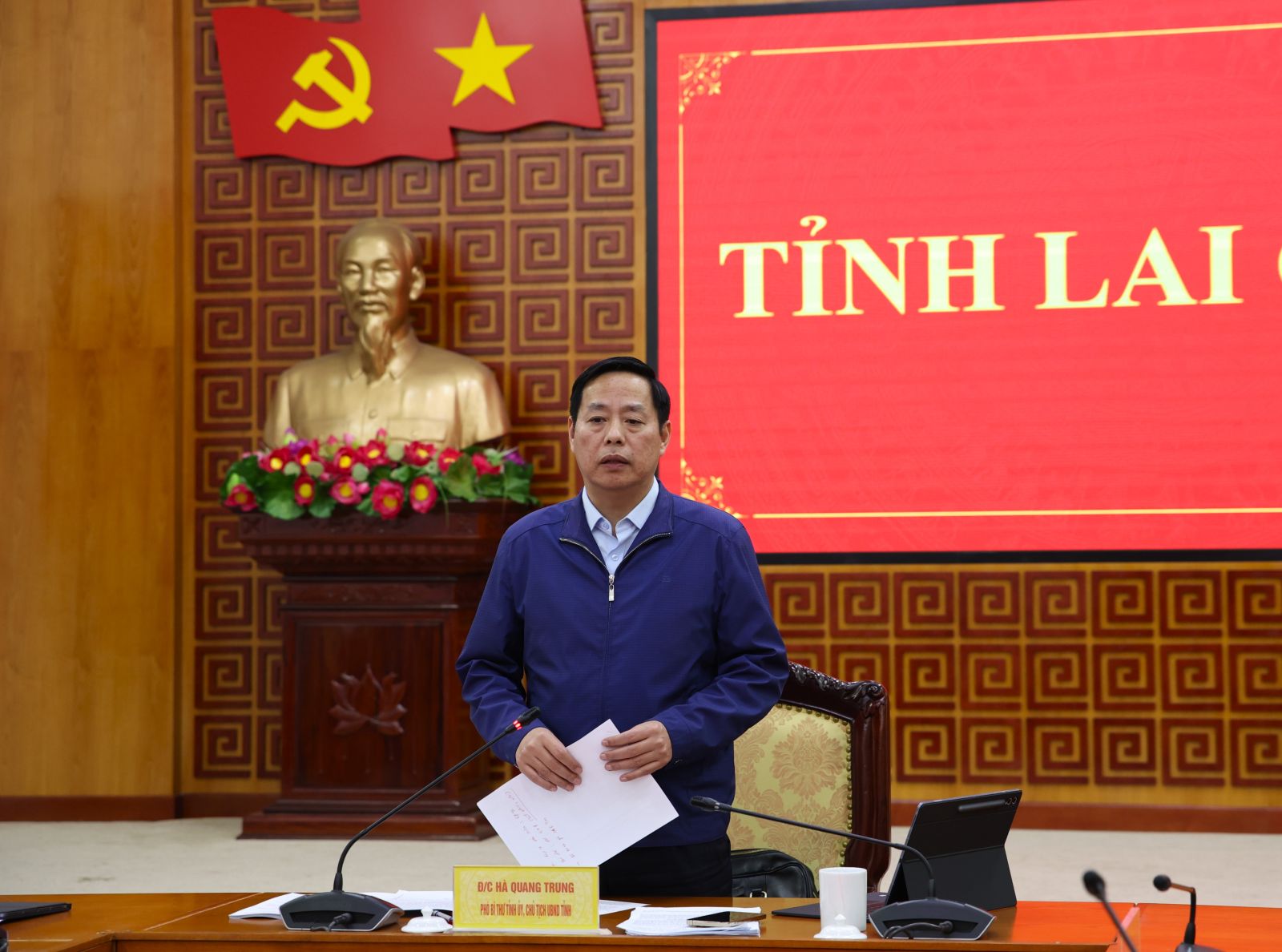 Phát biểu kết luận, Chủ tịch UBND tỉnh Hà Quang Trung yêu cầu các cấp, các ngành các cơ quan, đơn vị thực hiện nghiêm túc Công điện của Thủ tướng Chính phủ, các Thông báo kết luận của Ban Thường vụ Tỉnh ủy; thực hiện đồng bộ các nhiệm vụ, giải pháp đã đề ra trong chương trình, kế hoạch công tác, trọng tâm là việc thúc đẩy giải ngân kế hoạch vốn đầu tư công năm 2025, tiến độ thực hiện các dự án trọng điểm của tỉnh; quyết liệt chỉ đạo Trung tâm Phát triển quỹ đất phối hợp chặt chẽ với các sở, ngành, các địa phương đẩy nhanh tiến độ đấu giá quyền sử dụng đất tạo nguồn lực thực hiện dự án đầu tư theo kế hoạch; tích cực hướng dẫn chuyên môn, nghiệp vụ cho các xã...