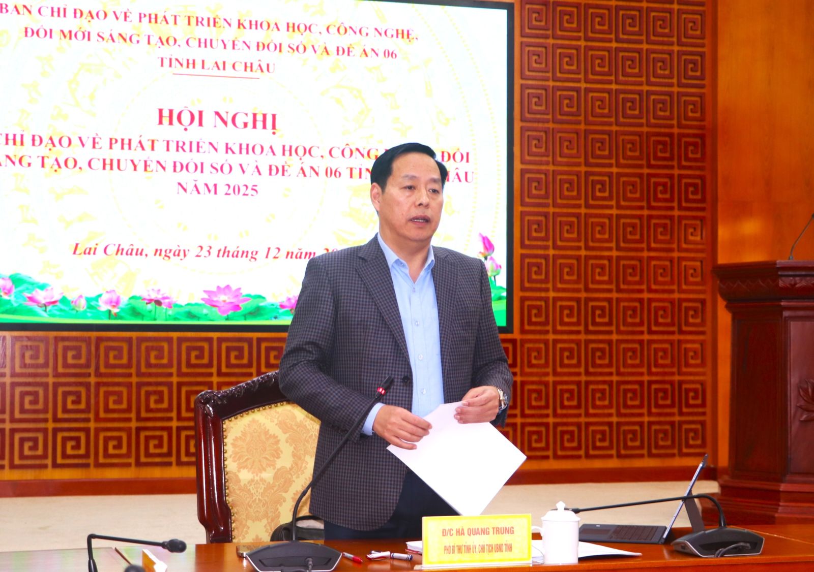 Phát biểu kết luận Hội nghị, đồng chí Hà Quang Trung - Chủ tịch UBND tỉnh ghi nhận những nỗ lực vượt bậc của toàn hệ thống chính trị trong thời gian qua. Để tiếp tục triển khai hiệu quả các nhiệm vụ về khoa học, công nghệ, đổi mới sáng tạo, chuyển đổi số, cải cách hành chính và Đề án 06, đồng chí đề nghị các sở, ban, ngành tỉnh, UBND các xã, phường tập trung thực hiện tốt một số nhiệm vụ trọng tâm như: Tiếp tục nâng cao vai trò, trách nhiệm của người đứng đầu; xác định rõ đây là nhiệm vụ chính trị trọng tâm, xuyên suốt; Sở Khoa học và Công nghệ tập trung nghiên cứu và rà soát lại toàn bộ các nhiệm vụ, thành lập tổ tham mưu triển khai thực hiện Nghị quyết 57 theo hướng phù hợp với điều kiện thực tế của phương. Các sở, ngành, địa phương: Rà soát và kiện toàn Ban Chỉ đạo các cấp và ban hành Quy chế hoạt động; đẩy mạnh cải cách hành chính gắn với chuyển đổi số; tập trung rà soát, đơn giản hóa thủ tục hành chính; tái cấu trúc quy trình giải quyết thủ tục hành chính trên môi trường điện tử; nâng cao chất lượng cung cấp dịch vụ công trực tuyến, lấy người dân, doanh nghiệp làm trung tâm phục vụ; triển khai quyết liệt, hiệu quả Đề án 06; tăng cường khai thác, sử dụng hiệu quả dữ liệu dân cư, định danh và xác thực điện tử; bảo đảm an toàn, an ninh thông tin; gắn triển khai Đề án 06 với phát triển chính quyền số, kinh tế số, xã hội số; quan tâm phát triển nguồn nhân lực và hạ tầng số; đẩy mạnh đào tạo, bồi dưỡng kỹ năng số cho cán bộ, công chức, viên chức và người dân; phát huy hiệu quả hoạt động của các Tổ công nghệ số cộng đồng; tiếp tục đầu tư, hoàn thiện hạ tầng viễn thông, công nghệ thông tin, nhất là tại vùng sâu, vùng xa; tăng cường công tác kiểm tra, giám sát, đánh giá; kịp thời biểu dương, khen thưởng các tập thể, cá nhân làm tốt; đồng thời phê bình, xử lý nghiêm các trường hợp chậm trễ, thiếu trách nhiệm trong tổ chức thực hiện nhiệm vụ...