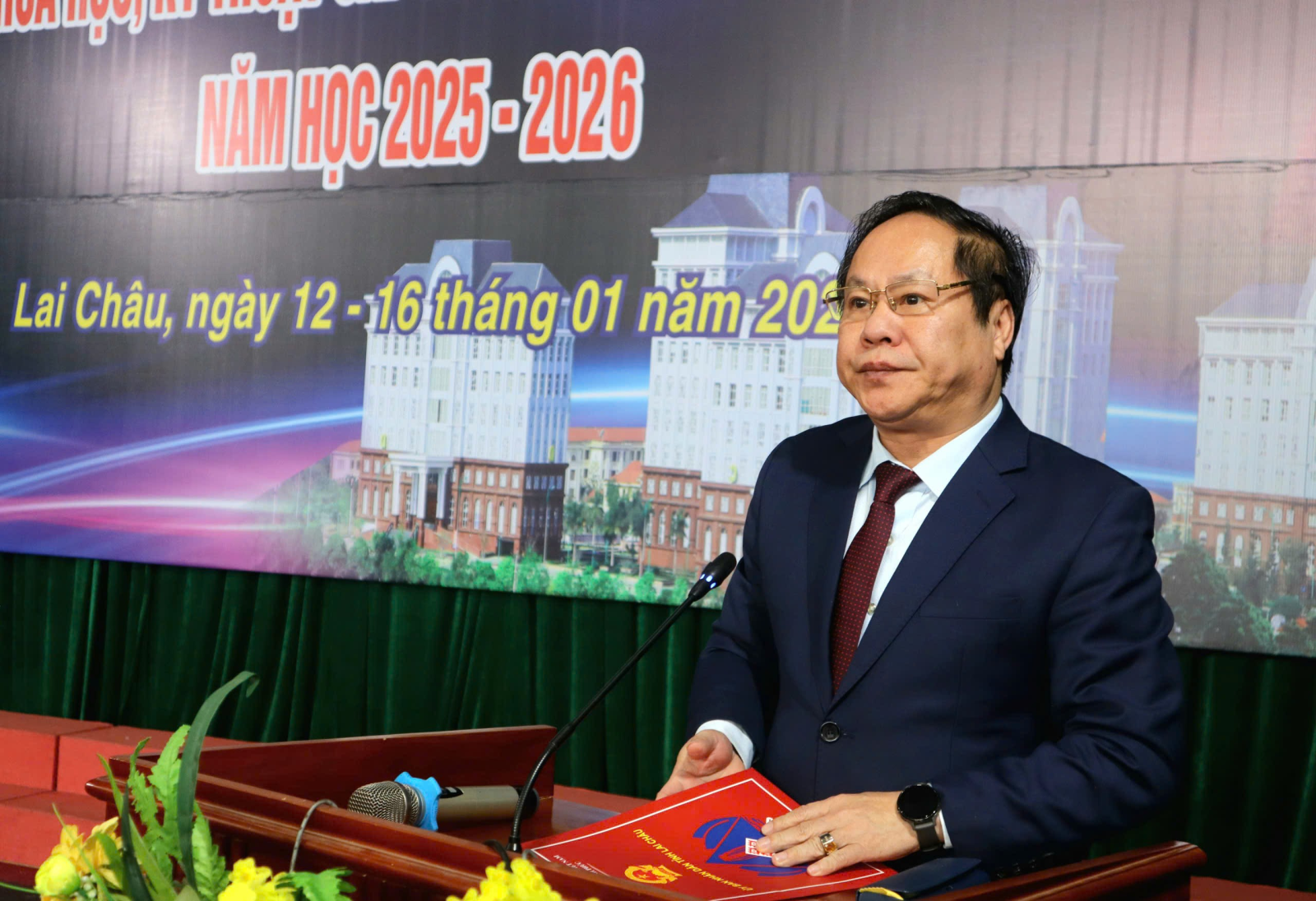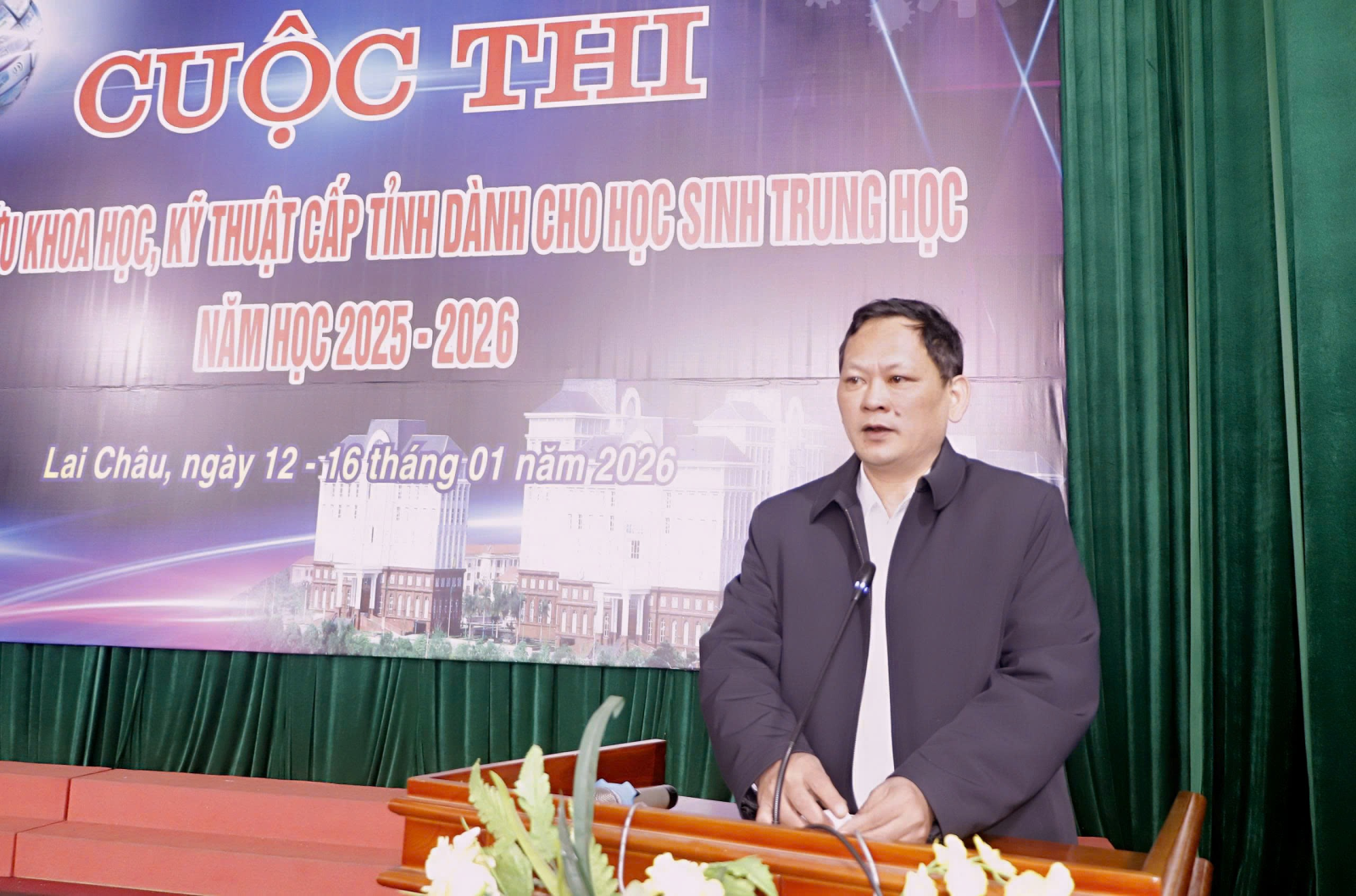 Phát biểu chỉ đạo tại Lễ bế mạc, đồng chí Tống Thanh Hải - Phó Chủ tịch Thường trực UBND tỉnh, Chủ tịch Hội Khuyến học tỉnh Lai Châu đã biểu dương các em tham gia Cuộc thi, đặc biệt là các em có 8 dự án đạt giải Nhất. Các em không chỉ mang đến sản phẩm, mà còn mang đến niềm hy vọng về một thế hệ tri thức trẻ Lai Châu đủ năng lực làm chủ công nghệ và giải quyết các bài toán của địa phương. Giải thưởng hôm nay là sự ghi nhận, nhưng quan trọng hơn là tinh thần khám phá của các em. Đồng chí Phó Chủ tịch Thường trực UBND tỉnh Tống Thanh Hải đề nghị các em học sinh tiếp tục nuôi dưỡng niềm đam mê, đưa các sản phẩm nghiên cứu từ phòng thí nghiệm vào ứng dụng thực tế, góp phần xây dựng quê hương Lai Châu ngày càng giàu đẹp. Các thầy giáo, cô giáo, ngành Giáo dục, các nhà trường tiếp tục tạo điều kiện tốt nhất để nuôi dưỡng các ý tưởng sáng tạo. Cần xem nghiên cứu khoa học là hoạt động thường xuyên, là chìa khóa để nâng cao chất lượng dạy và học trong kỷ nguyên số.