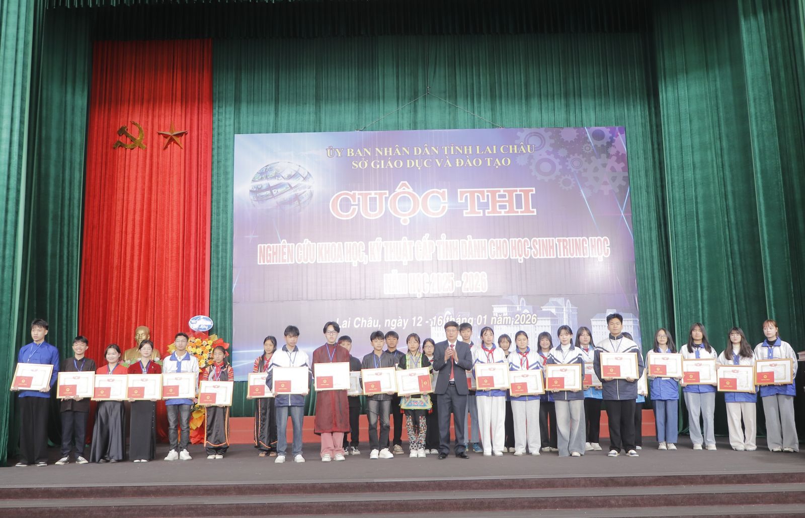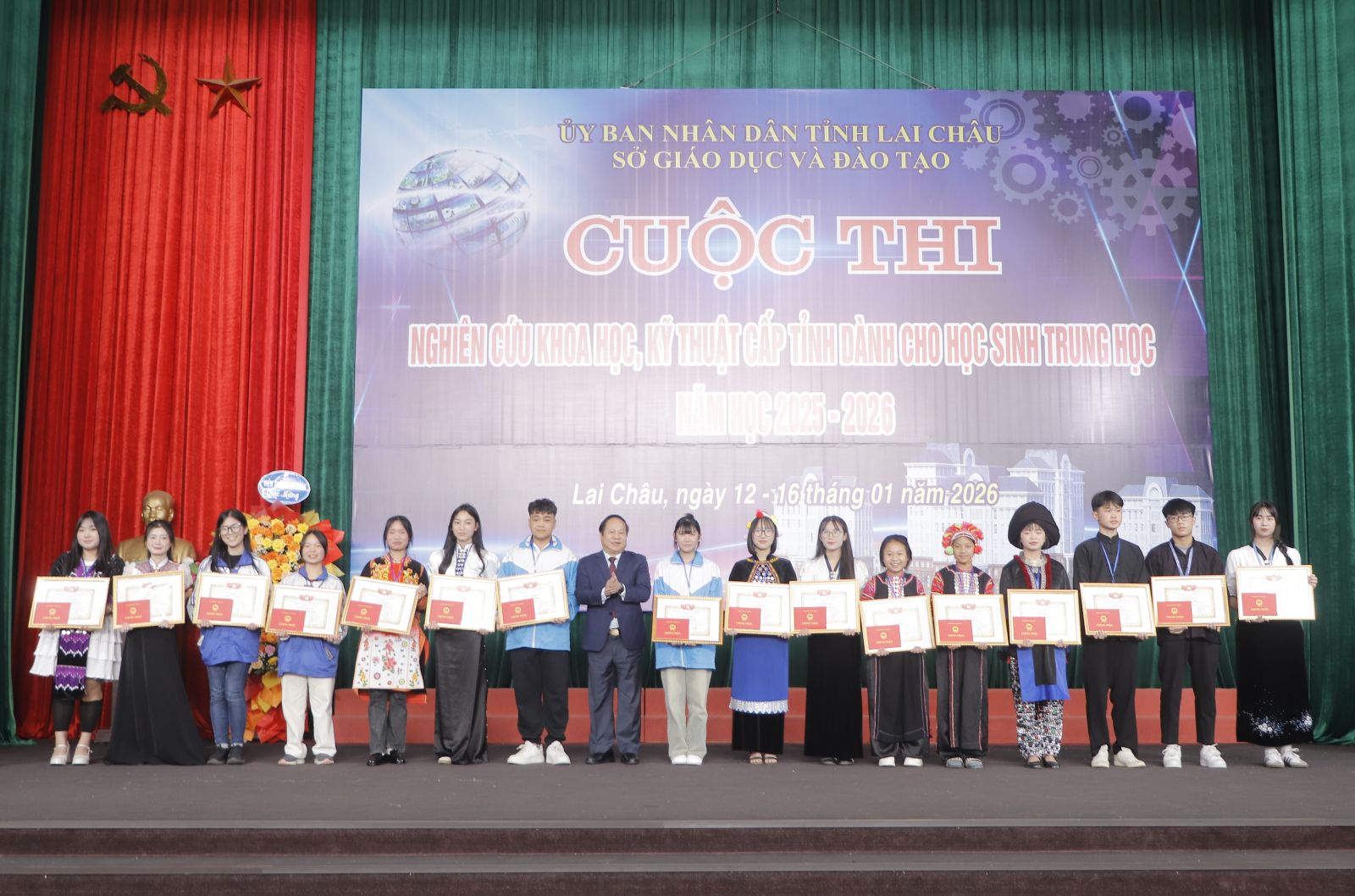 Nhân dịp này, Ban Chấp hành Đoàn thanh niên Cộng sản Hồ Chí Minh tỉnh Lai Châu đã tặng Giấy khen cho các em học sinh đạt kết quả cao trong Cuộc thi Nghiên cứu khoa học, kỹ thuật cấp tỉnh dành cho học sinh trung học năm học 2025 - 2026.