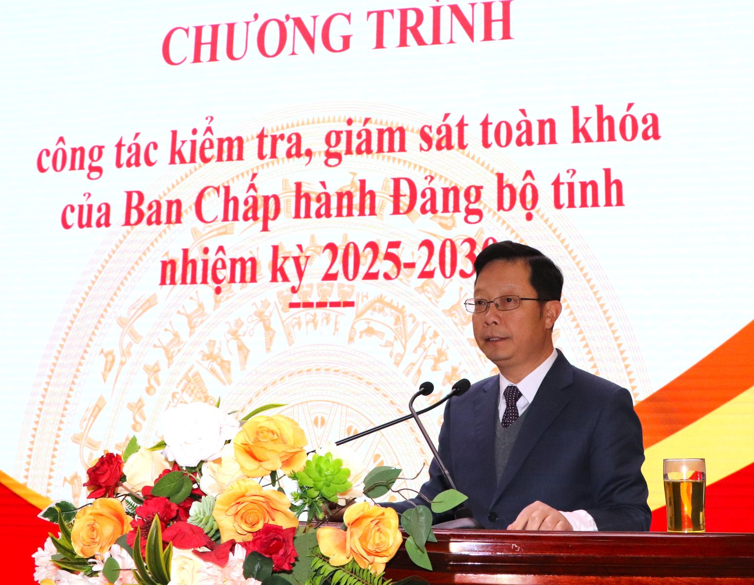Tại Hội nghị, đồng chí Nguyễn Ngọc Vinh - Phó Bí thư Tỉnh ủy, Chủ nhiệm UBKT Tỉnh ủy đã triển khai Chương trình công tác kiểm tra, giám sát toàn khóa của Ban Chấp hành Đảng bộ tỉnh nhiệm kỳ 2025 - 2030. Theo đó, về lãnh đạo công tác kiểm tra, giám sát, Tỉnh ủy Lai Châu tiếp tục tăng cường tuyên truyền, phổ biến, quán triệt sâu rộng nghị quyết, chỉ thị, kết luận, quy định, quy chế, hướng dẫn của Trung ương về công tác kiểm tra, giám sát, kỷ luật của Đảng; nâng cao nhận thức, trách nhiệm, quyết tâm hành động của cấp ủy, tổ chức đảng, cán bộ, đảng viên, nhất là ở cấp cơ sở về công tác kiểm tra, giám sát. Người đứng đầu cấp ủy phải xác định trách nhiệm của mình, trực tiếp, thường xuyên lãnh đạo và thực hiện nhiệm vụ kiểm tra, giám sát. Quan tâm lãnh đạo, chỉ đạo cấp ủy, tổ chức đảng, UBKT các cấp xây dựng chương trình, kế hoạch kiểm tra, giám sát nhiệm kỳ và hằng năm đảm bảo toàn diện, trọng tâm, trọng điểm, thiết thực. Tiếp tục đổi mới mạnh mẽ tư duy, phương pháp cách thức tổ chức công tác kiểm tra, giám sát. Thường xuyên rà soát, cụ thể hóa, ban hành đồng bộ văn bản lãnh đạo, chỉ đạo thực hiện công tác kiểm tra, giám sát phù hợp với quy định của Đảng và yêu cầu nhiệm vụ thực tiễn. Nâng cao hiệu quả phối hợp giữa UBKT với các cơ quan chức năng; phát huy vai trò, trách nhiệm, tính chủ động phối hợp, tổ chức thực hiện nhiệm vụ kiểm tra, giám sát...