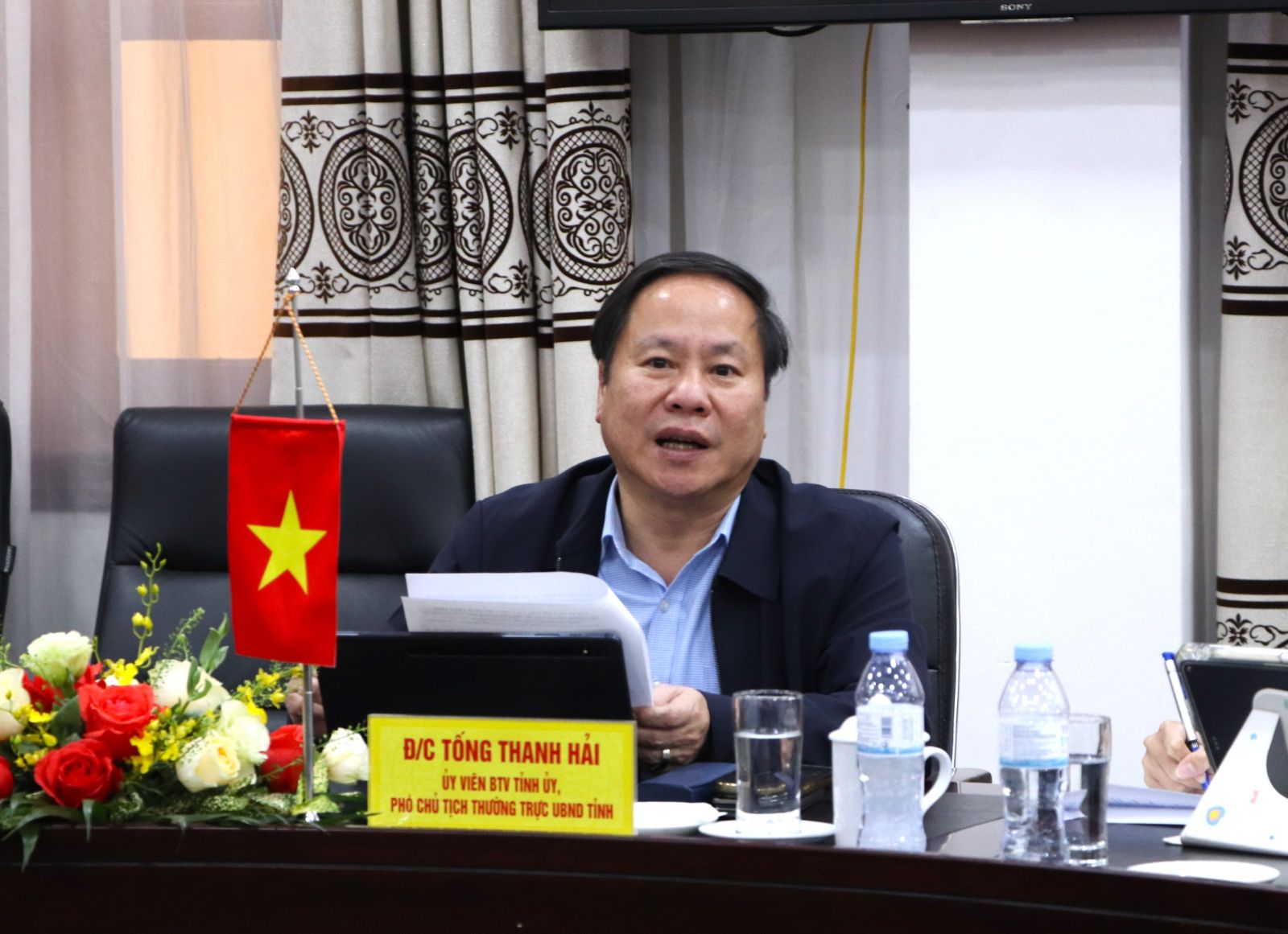 Phát biểu tại buổi làm việc, đồng chí Tống Thanh Hải - Phó Chủ tịch Thường trực UBND tỉnh Lai Châu bày tỏ niềm vui được đón tiếp ông Kim Yu-sin và Đoàn công tác của Chính quyền thành phố Mungyeong đến thăm, làm việc và tuyển lao động tại tỉnh Lai Châu.