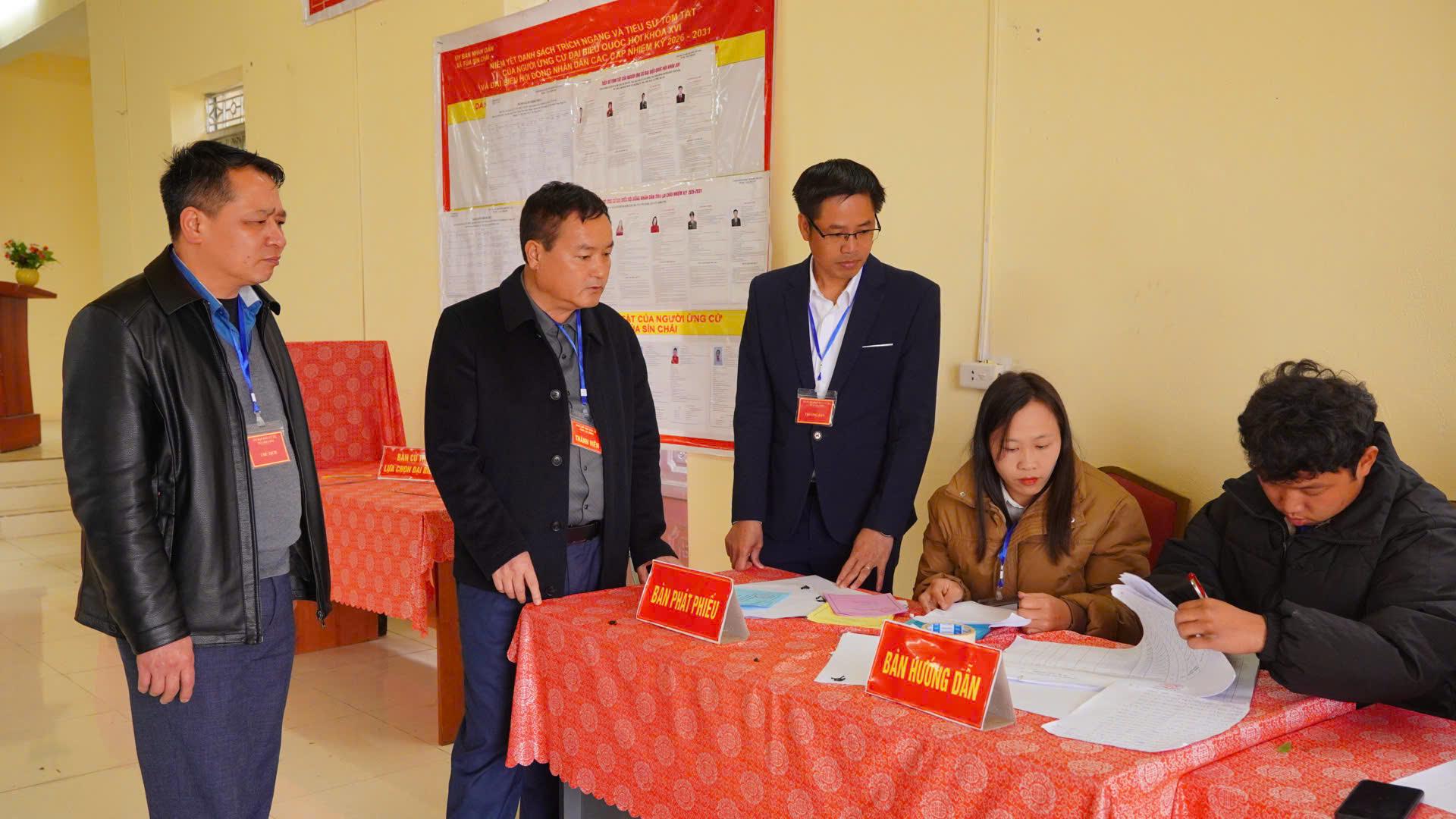 Xã Tủa Sín Chải có 30 tổ bầu cử với 7.890 cử tri. Trong sáng nay, đoàn công tác đã đến kiểm tra, nắm tình hình tổ chức bầu cử tại các khu vực bỏ phiếu ở các bản: Thà Giàng Chải, Tù Cù Phìn và San Sủa Hồ.
