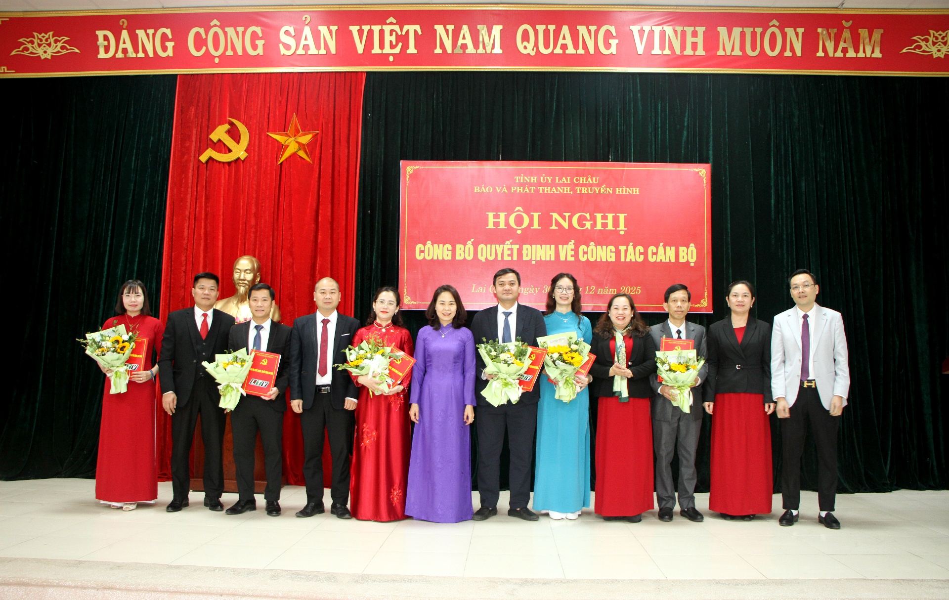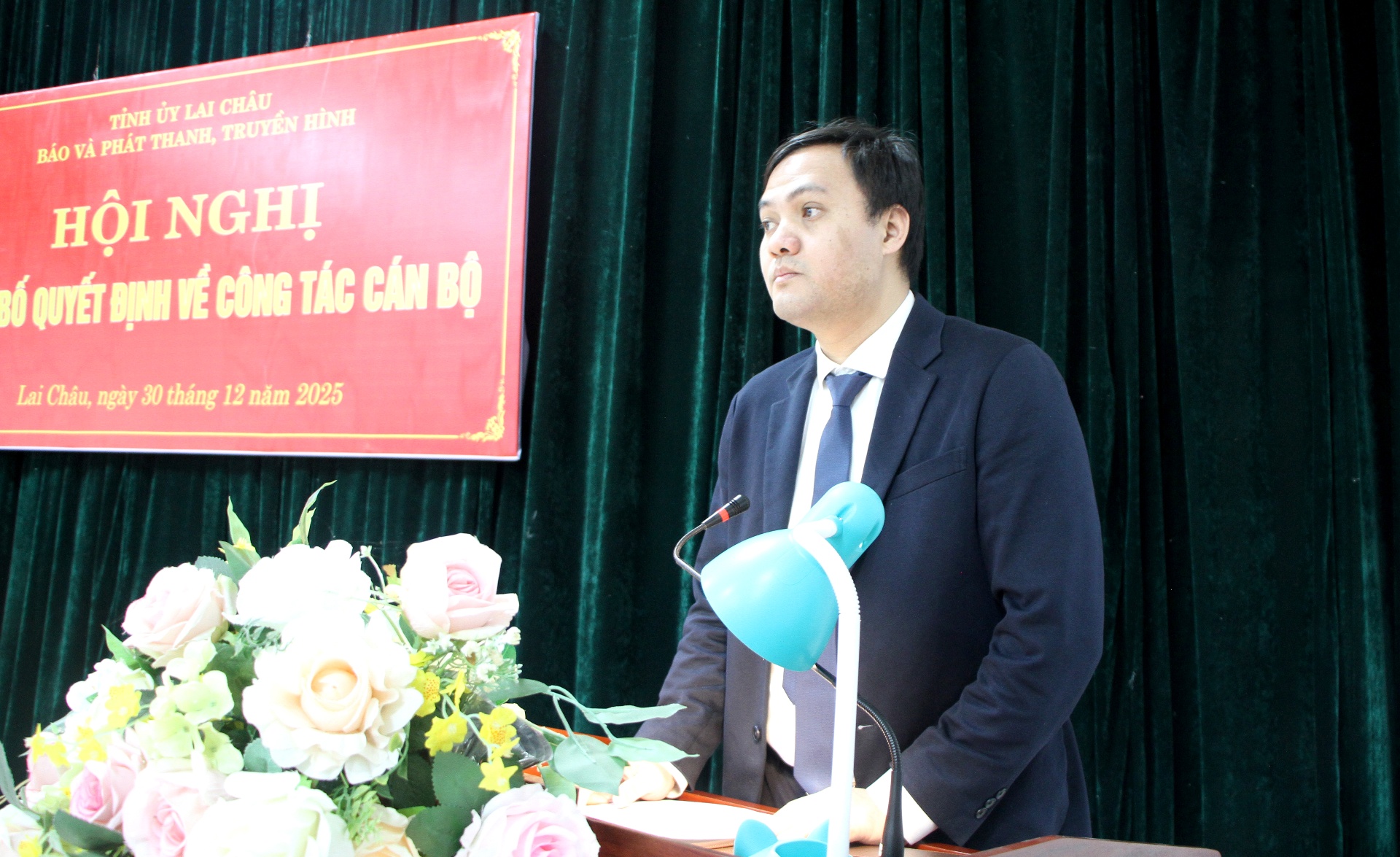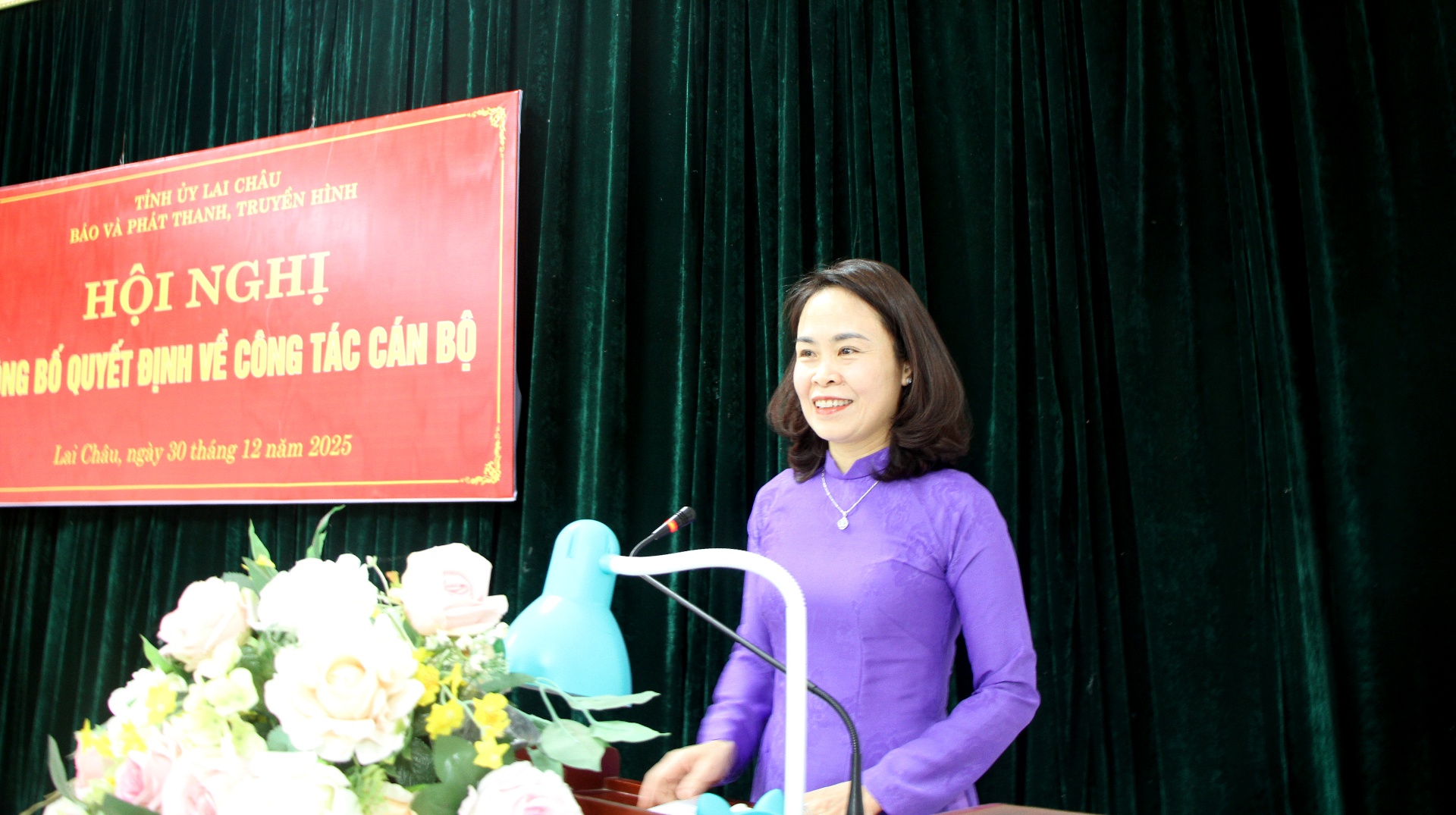 Hội nghị đã công bố Quyết định của Giám đốc Báo và phát thanh, truyền hình Lai Châu về việc thành lập 6 phòng chuyên môn trực thuộc, gồm: Văn phòng; Phòng Thư ký - Biên tập; Phòng Thời sự; Phòng Chuyên đề; Phòng Kỹ thuật - Công nghệ; Phòng Phát thanh - Truyền hình tiếng dân tộc. Công bố Quyết định phân công công tác đối với viên chức, người lao động, cộng tác viên tại các phòng chuyên môn từ 1/1/2026.
