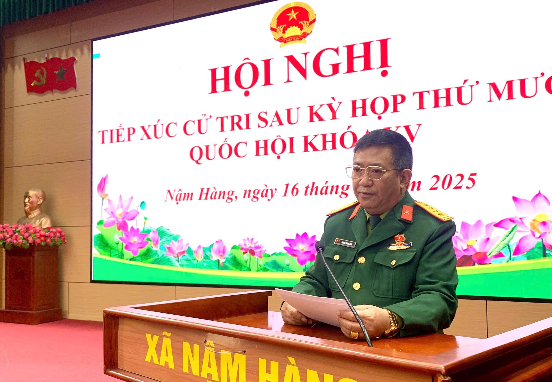 Đồng chí Hoàng Thanh Bình - Phó Chỉ huy trưởng Bộ Chỉ huy Quân sự tỉnh, Đại biểu Quốc hội khóa XV của tỉnh thông báo tới cử tri kết quả Kỳ họp thứ 10, Quốc hội khóa XV.