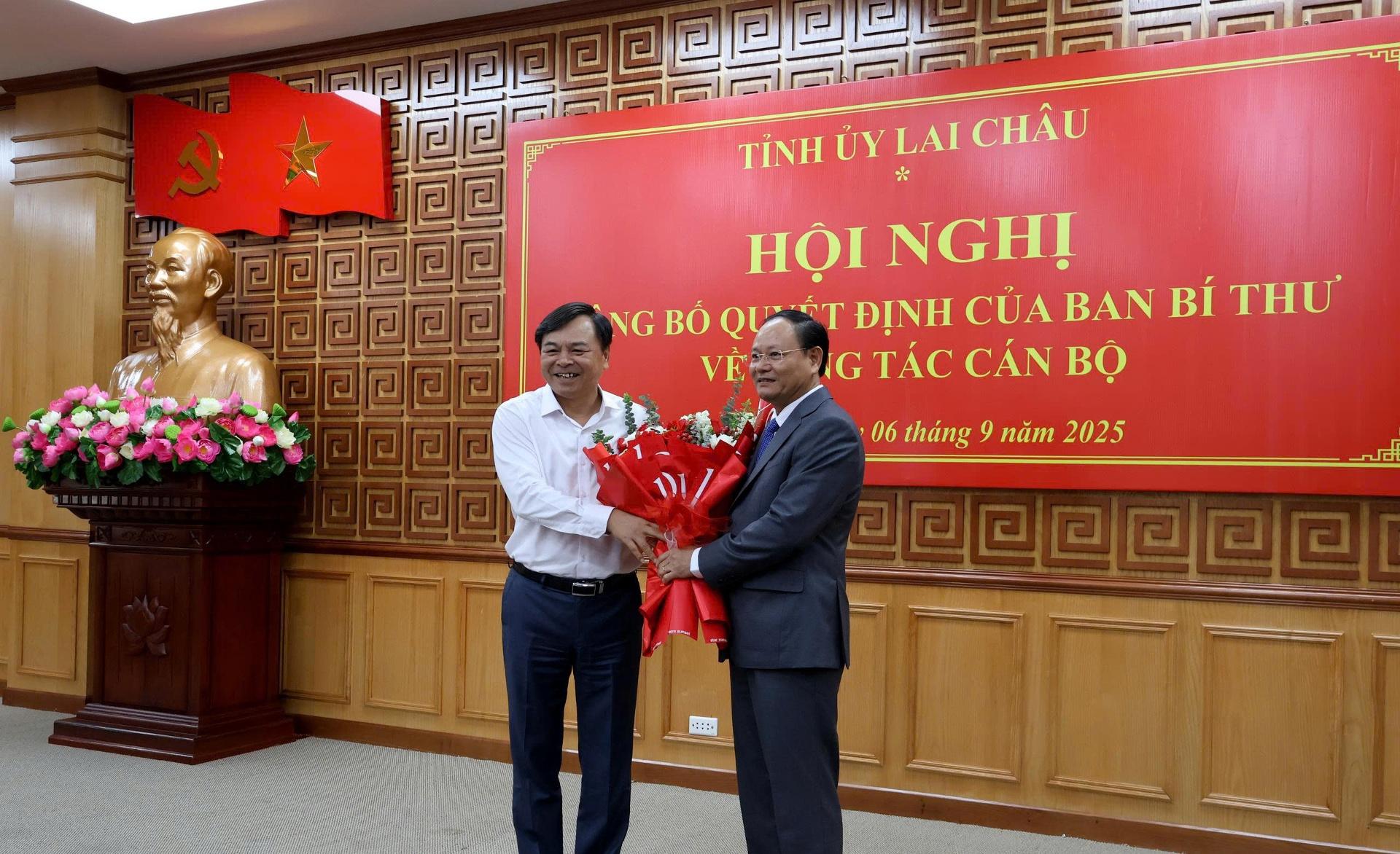 Tại hội nghị đã công bố Quyết định số 2283 - QĐNS/TW ngày 30/8/2025 của Ban Bí thư Trung ương Đảng quyết định đồng chí Lê Minh Ngân thôi giữ chức Ủy viên BCH, Ủy viên BTV Đảng ủy Bộ NN&MT, Thứ trưởng Bộ NN&MT để điều động, chỉ định tham gia BCH, BTV Tỉnh ủy, giữ chức Phó Bí thư Thường trực Tỉnh ủy Lai Châu nhiệm kỳ 2020-2025.