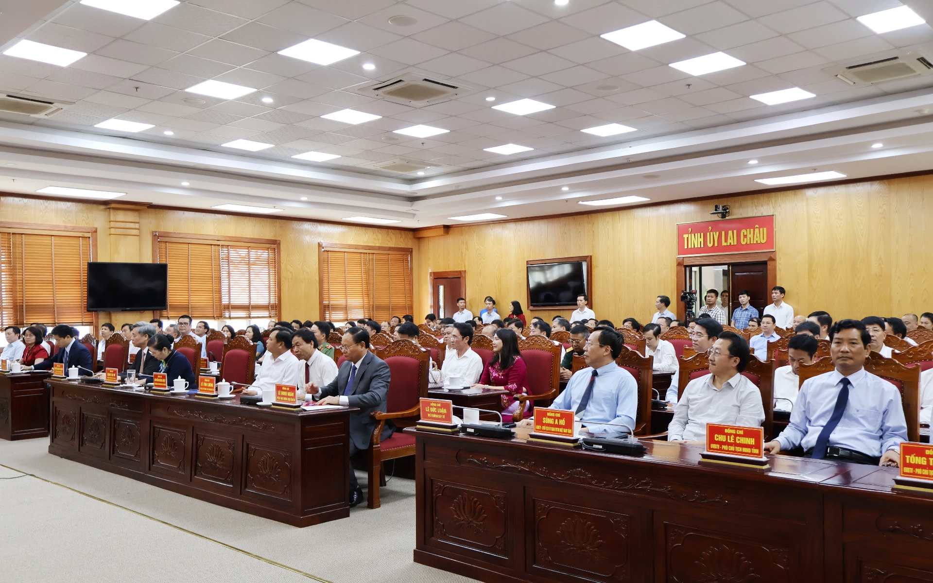 Về phía tỉnh Lai Châu có các đồng chí: Giàng Páo Mỷ - Ủy viên BCH Trung ương Đảng, Bí thư Tỉnh ủy, Chủ tịch HĐND, Trưởng đoàn Đại biểu Quốc hội tỉnh; Lê Văn Lương – Phó Bí thư Tỉnh ủy, Chủ tịch UBND tỉnh; các đồng chí trong BTV Tỉnh ủy; BCH Đảng bộ tỉnh; đại diện lãnh đạo các sở, ban, ngành, tổ chức chính trị- xã hội tỉnh dự.