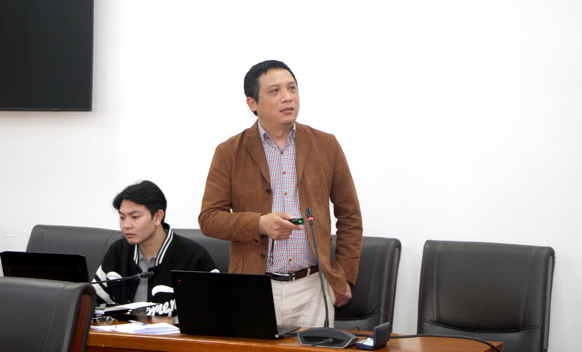 Đơn vị tư vấn lập nhiệm vụ quy hoạch chung xã trình bày nhiệm vụ quy hoạch tại cuộc họp.