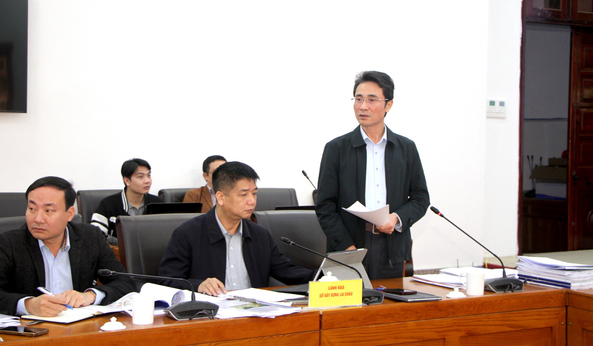Lãnh đạo Sở Xây dựng phát biểu tại cuộc họp.