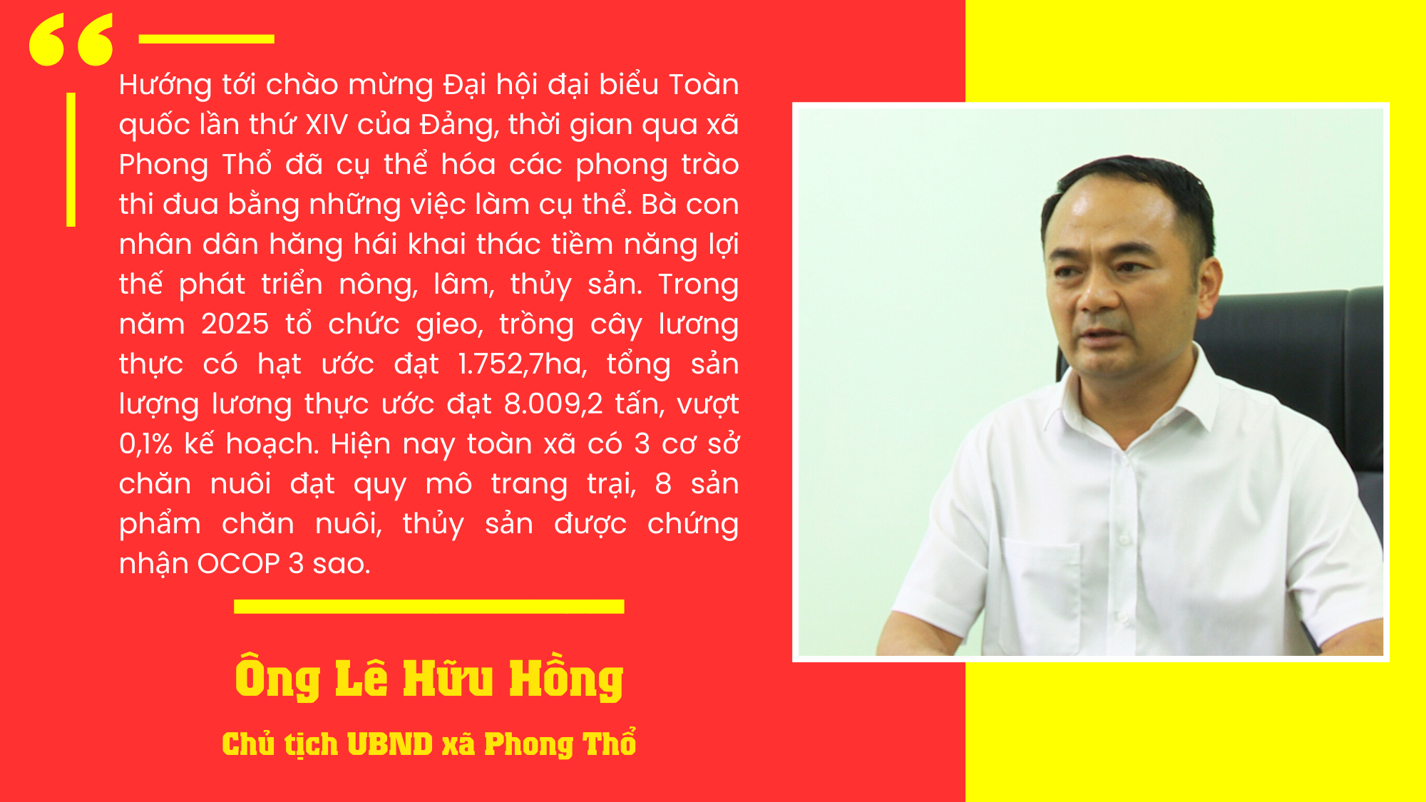 Điển hình trên lĩnh vực phát triển kinh tế, các địa phương trong tỉnh từ Tân Phong đến Đoàn Kết, Sin Suối Hồ, Phong Thổ, Bình Lư, Tân Uyên… tích cực thi đua khai thác hiệu quả tiềm năng, lợi thế sẵn có, nhất là trong phát triển nông nghiệp hàng hóa, lâm nghiệp bền vững và kinh tế cửa khẩu. Phong trào thi đua lao động sản xuất gắn với ứng dụng khoa học - kỹ thuật, chuyển đổi số trong nông nghiệp đã giúp nhiều vùng sản xuất tập trung từng bước hình thành, tạo nền tảng vững chắc cho phát triển kinh tế bền vững. Nhờ triển khai đồng bộ các giải pháp, kinh tế của tỉnh tiếp tục duy trì đà tăng trưởng khá. Tốc độ tăng tổng sản phẩm trên địa bàn (GRDP) năm 2025 đạt 8,2%. Tổng sản phẩm bình quân đầu người đạt 65,5 triệu đồng, tăng 2,9 triệu đồng so với năm 2024.