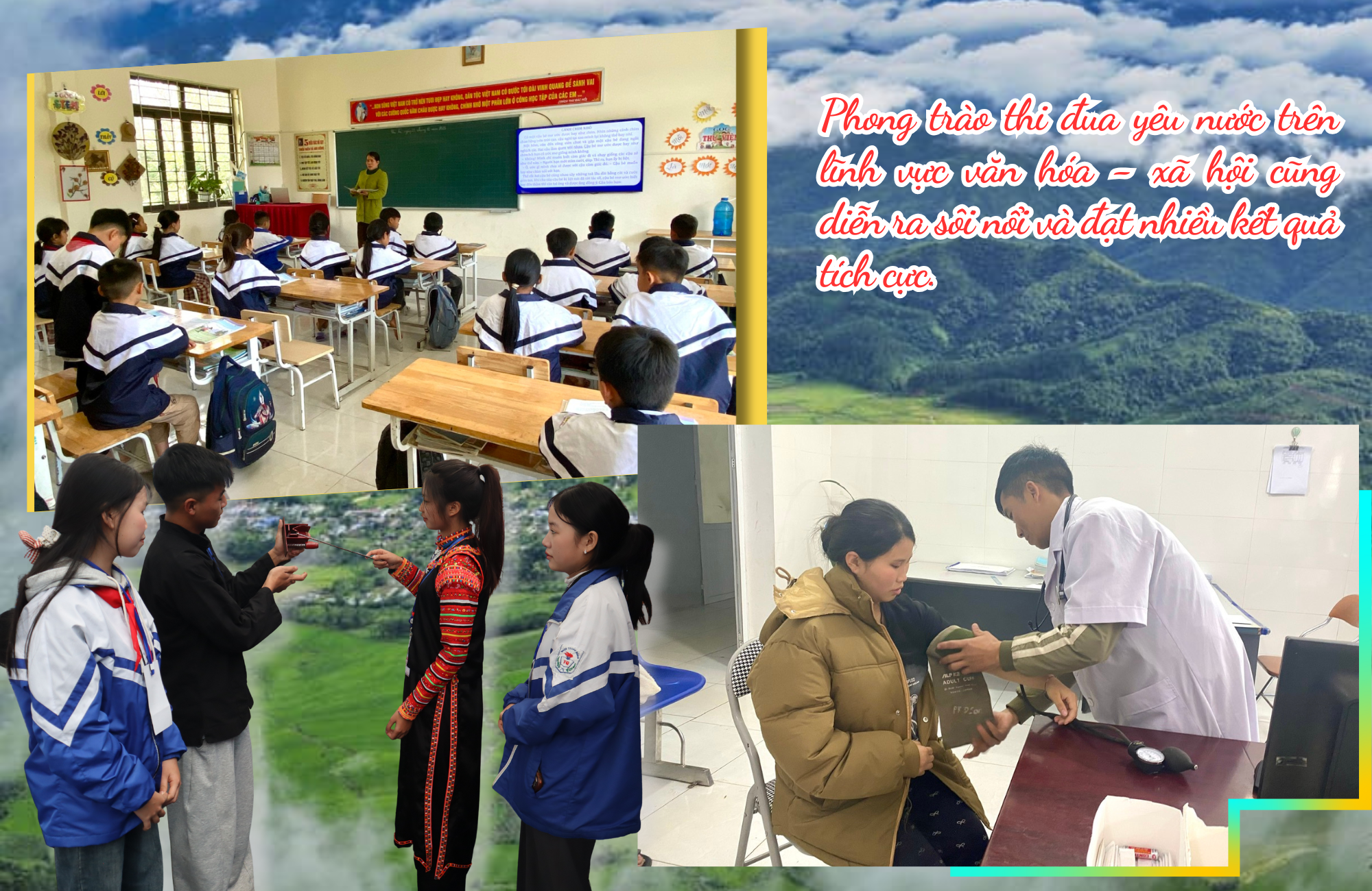 Phong trào thi đua yêu nước trên lĩnh vực văn hóa - xã hội cũng diễn ra sôi nổi và đạt nhiều kết quả tích cực. Ngành Giáo dục thi đua đổi mới phương pháp dạy và học, nâng cao chất lượng giáo dục toàn diện; đội ngũ thầy cô giáo không quản khó khăn, bám bản, bám trường, tận tụy với sự nghiệp “trồng người” nơi vùng cao, biên giới. Ngành Y tế thi đua nâng cao chất lượng khám, chữa bệnh, chăm sóc sức khỏe nhân dân, từng bước đáp ứng tốt hơn nhu cầu chăm sóc sức khỏe ngày càng cao của người dân.