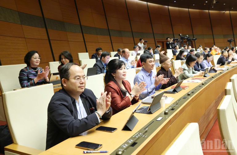Quốc hội chính thức thông qua Luật Phòng bệnh với đại đa số đại biểu Quốc hội bấm nút biểu quyết tán thành. (Ảnh: DUY LINH)