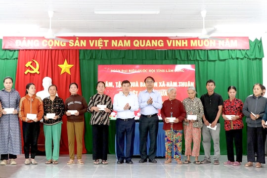 Đoàn ĐBQH tỉnh Lâm Đồng thăm, tặng quà các hộ dân bị thiệt hại do mưa lũ tại Hàm Thuận