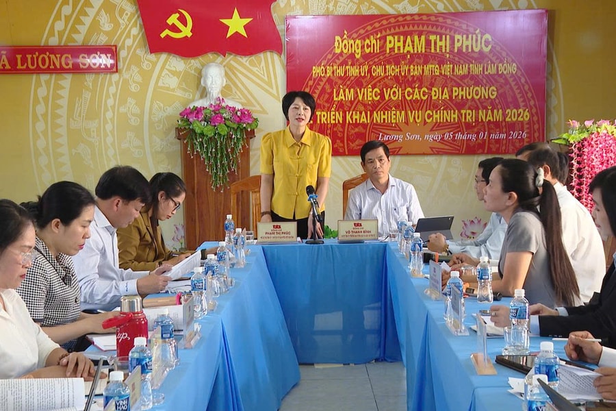 Chiều 5/1, đồng chí Phạm Thị Phúc, Phó Bí thư Tỉnh ủy, Chủ tịch Ủy ban MTTQ Việt Nam tỉnh Lâm Đồng chủ trì buổi làm việc với các xã Hòa Thắng, Lương Sơn và Hồng Thái về triển khai nhiệm vụ chính trị năm 2026.