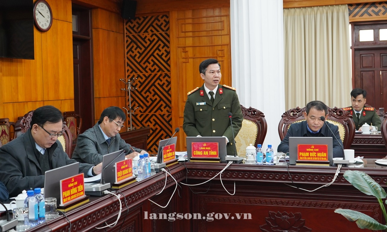 Lãnh đạo Công an tỉnh phát biểu thảo luận tại cuộc họp