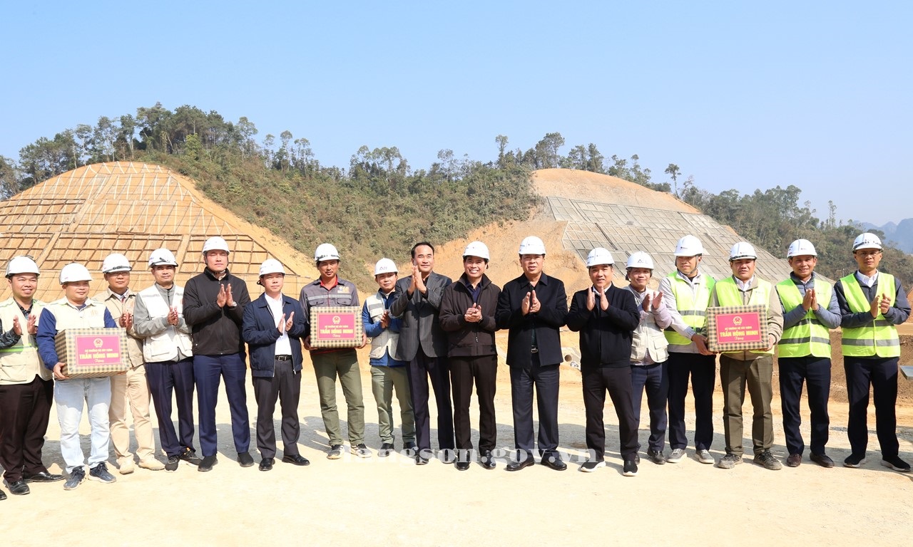 Đồng chí Trần Hồng Minh, Bộ trưởng Bộ Xây dựng (thứ hai từ phải sang) kiểm tra hiện trường dự án cao tốc cửa khẩu Hữu Nghị - Chi Lăng